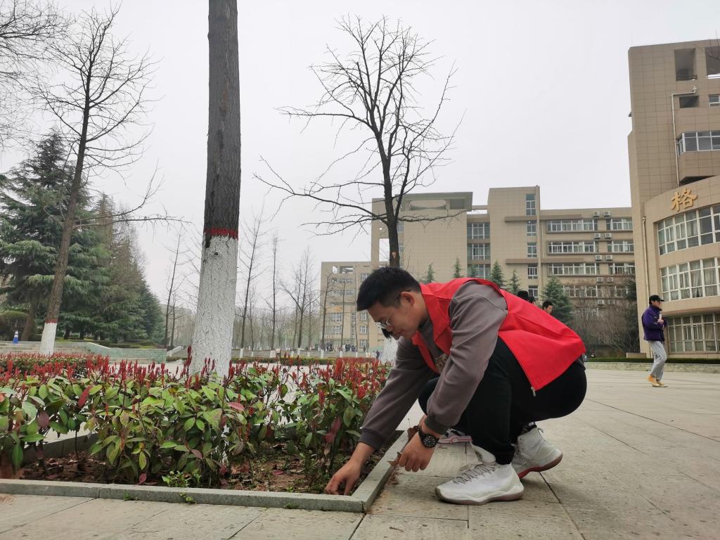 3月15日七点,我院团委各部门干事齐聚育英楼。穿马甲,带团徽,顶着朝阳与教学楼清洁大叔共同工作。他们清扫了教学楼附近的枯枝败叶,拾捡了花圃草丛中的垃圾,按照垃圾分类的规定严格投放至各垃圾桶。经过众人的努力之后,教学楼附近的地面显得愈加整洁,伴随着早课学生的踏入,万物都显出欣欣向荣的姿态来。