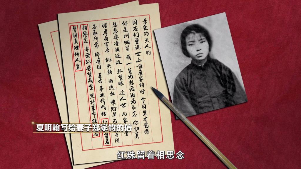 在给妻子郑家钧的信中,他写道:“红珠留着相思念,赤云孤苦望成全。坚持革命继吾志,誓将真理传人寰!”信中提到的“赤云”,是夏明翰的女儿夏芸,当时只有4个多月。