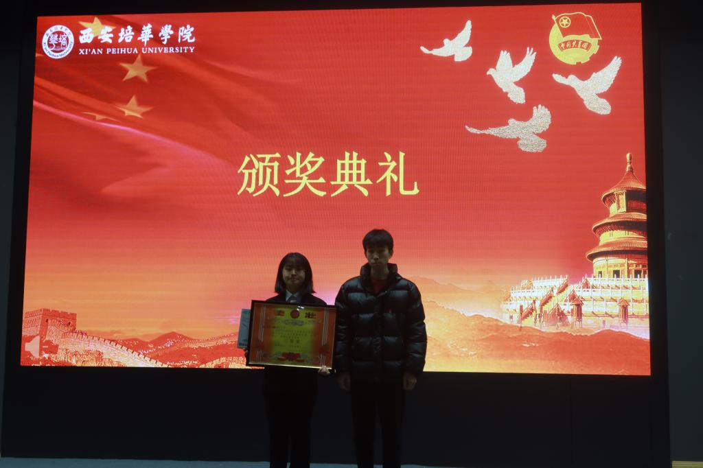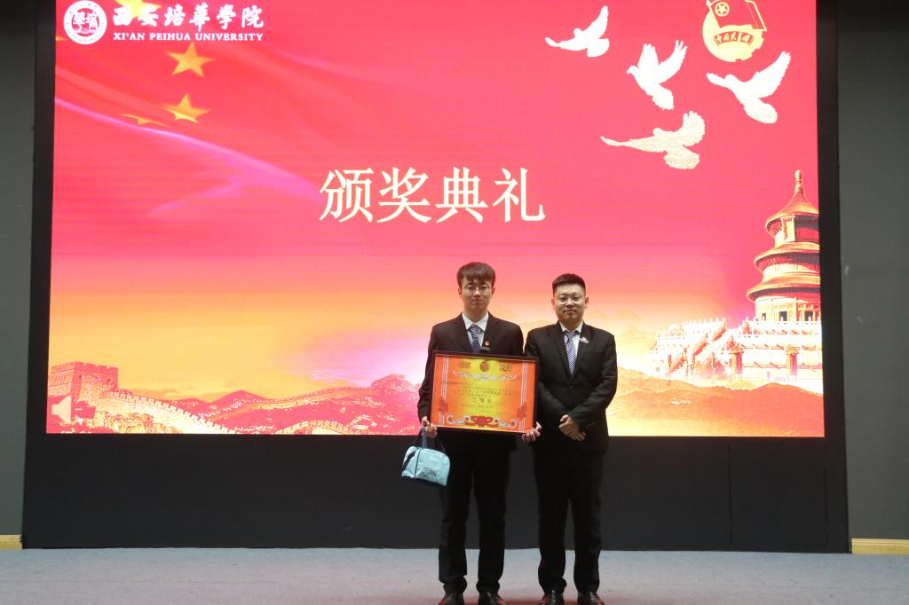 由西安培华学院校团委工作部副部长许向泽为三等奖颁奖