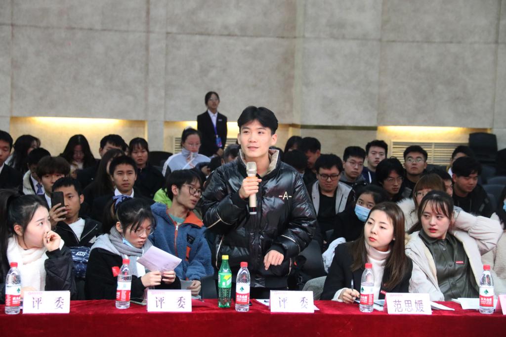 本次辩论赛由主持团成员赵森主持,与会人员有团委书记范思媛老师、辅导员高珊珊老师、各二级学院辩论队代表及部分大一新生观众。首先由高珊珊老师讲话,表达了对本次参赛选手的肯定和对本次决赛的期待。