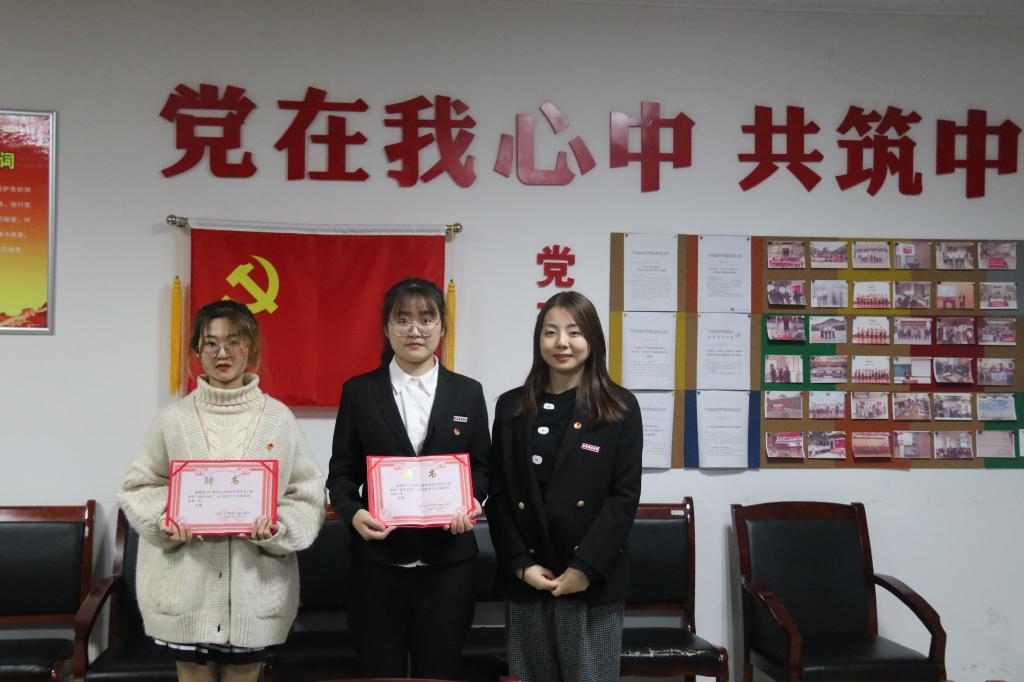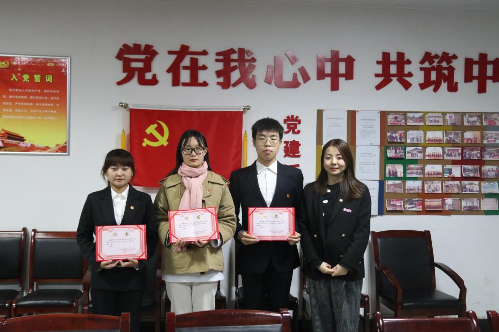经过激烈的答辩之后,本次活动也接近了尾声,经过评委严格的审核,本次“团员大使”活动选出了赛事的前五名。由智能科学与信息工程学院团委书记兼辅导员范思媛老师为获奖人员颁奖。