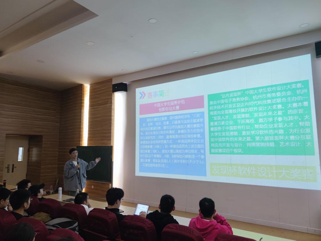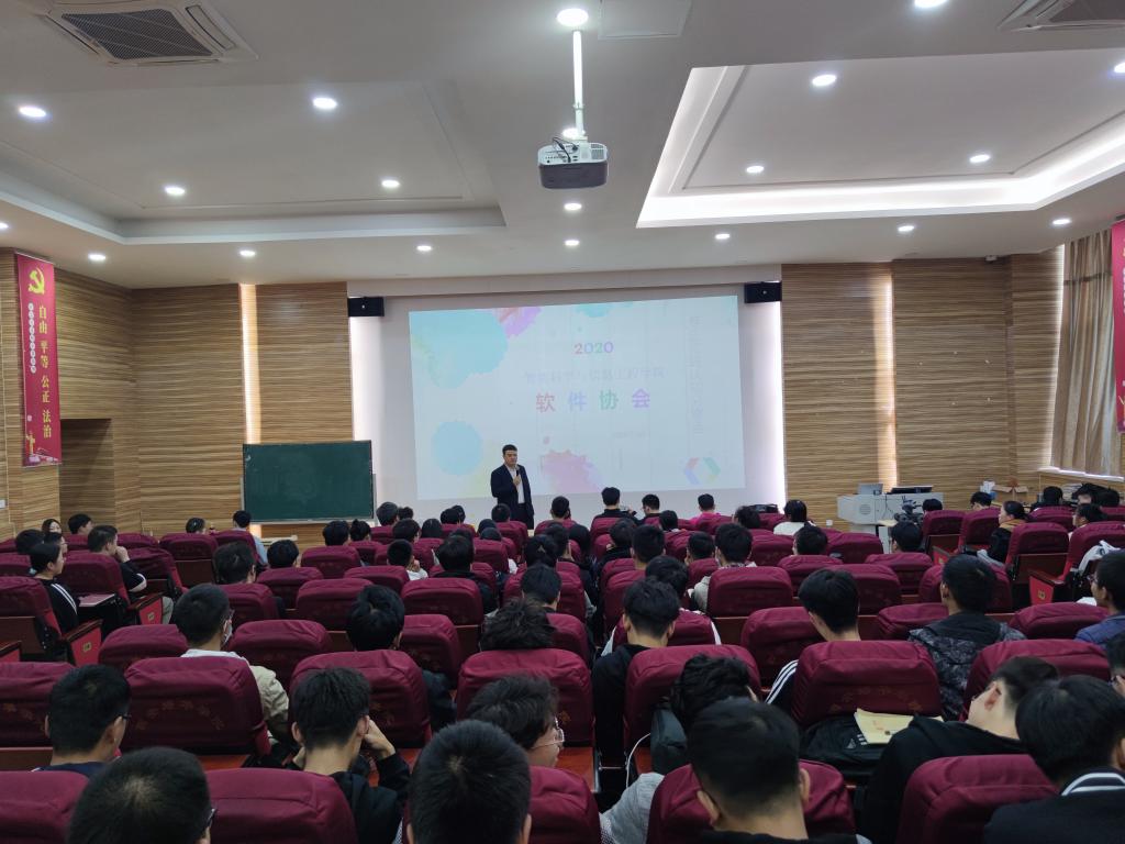 软件协会宣传部尚天琪学长在会上介绍到,软件协会是我院指导下成立的专业性社团,下设组织部、宣传部。软件协会以“以赛促学”为指导方针;以“分享、合作、努力、创新”为宗旨。目的是为我院学生普及IT行业相关知识,激发学生对计算机应用的兴趣,提高学生的专业知识水平,调动学生学习的积极性,培养团队合作及创新能力,丰富课余生活。