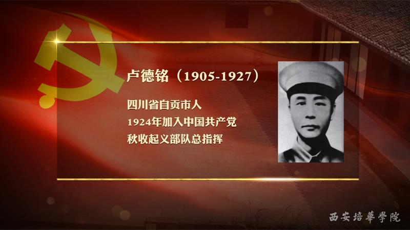 卢德铭,1905年出生于四川省自贡市,黄埔军校二期毕业,1924年加入中国共产党,在东征和北伐中冲锋陷阵、屡建奇功,是叶挺麾下的著名战将,参加了著名的汀泗桥战斗。