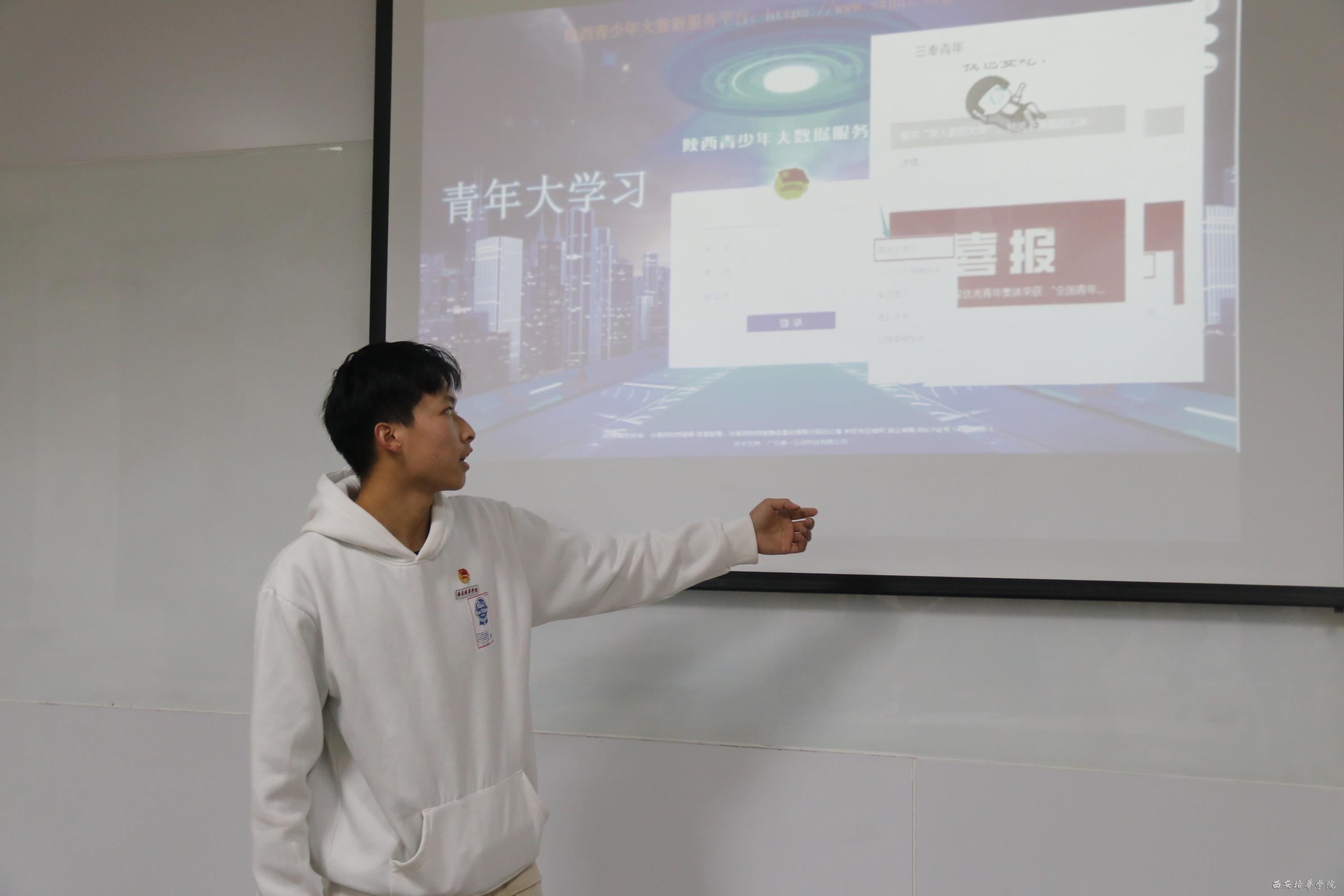 团委办公室委员杨子孟向各班团支书具体讲解了“智慧团建”活动的上传步骤,并为各团支书解答他们在工作中的难题。团委办公室委员张崇昌为大家详细说明“青年大学习”和“团日活动”的工作内容,提出各团支书在工作过程中出现的问题并给予改正建议,帮助各团支书更好地带领各团支部。