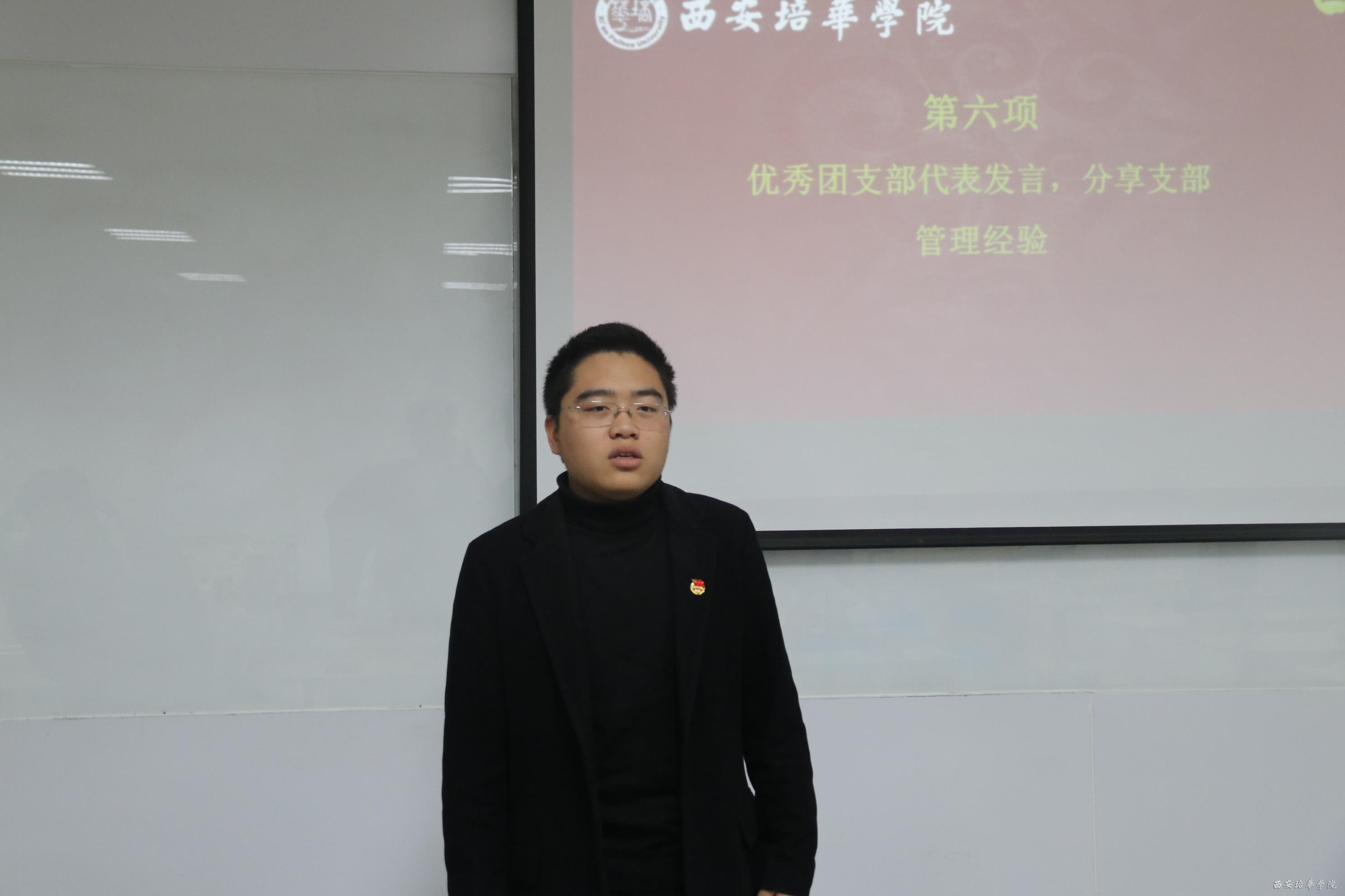 优秀团支部代表软件工程1802班团支部、计算机科学与技术1802班团支部发言。团支部代表向大家分享了如何高效的工作、如何在高强度工作的同时和同学们打好关系,同时也分享了他们在工作中的趣事,他们提到,深入同学之中,与各班成员做好密切的交流,才能够使团支部工作较为轻松的进行。