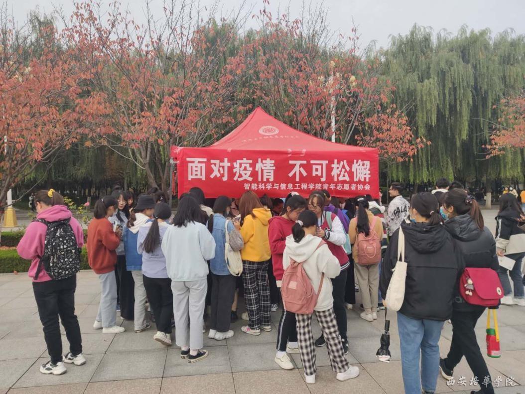 2020年10月28日12:00,智能科学与信息工程学院在综合楼西广场组织“抗击疫情调查问卷”活动。