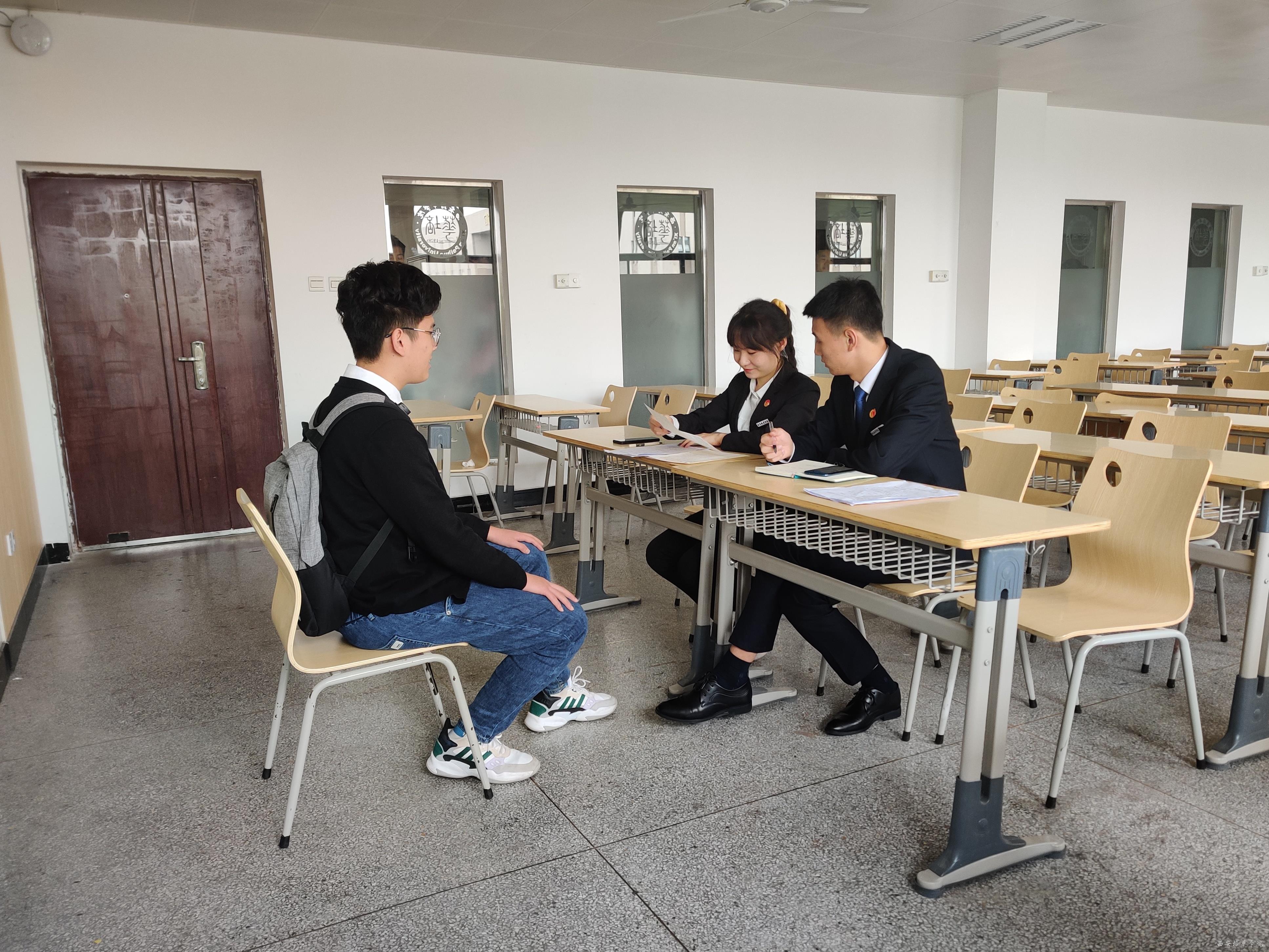 本次面试主要分为六大区域,这也分别代表了六个不同的部门,此次活动由我院学生会执行主席林芳和执行主席张贾辉以及各部门部长负责。上交了纳新表的新生们有秩序的在门外候场,正在接受面试的同学们自如的进行着自我介绍,并且有条理的回答学长学姐用心准备的一个个问题。