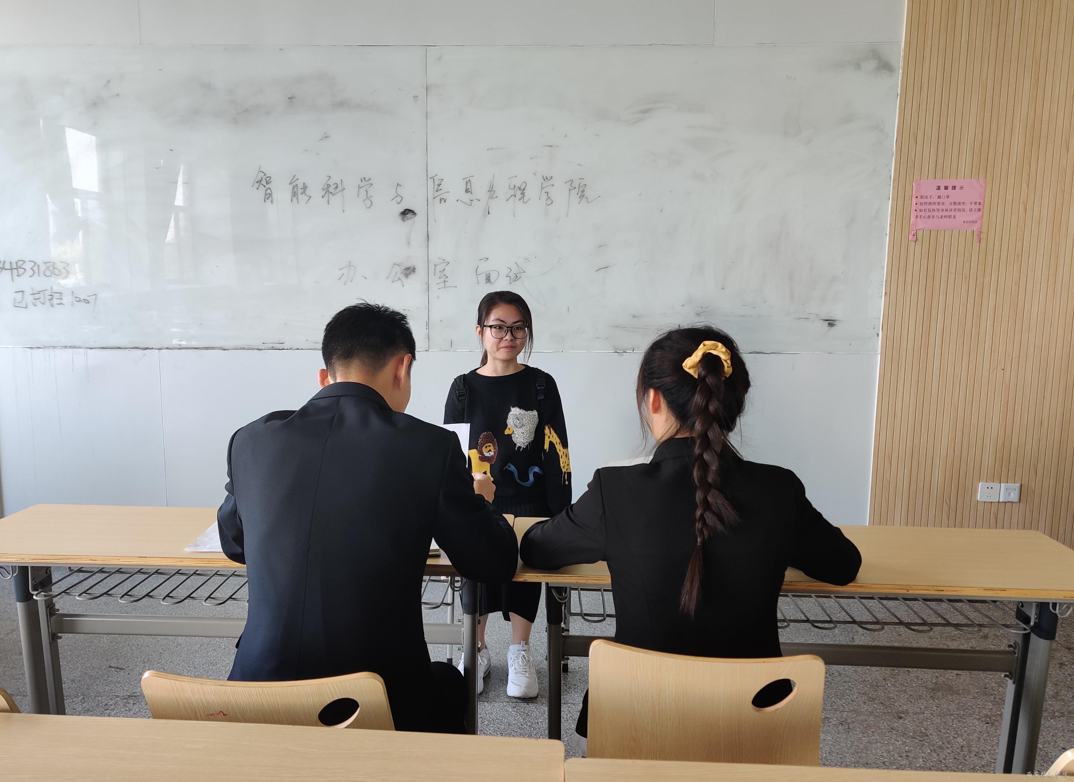 为使智能科学与信息工程学院学生会新学年工作顺利进行,我院学生会于2020年10月7日中午12:15在育英楼进行了第六届学生会的纳新面试活动,本次活动为同学们提供了一个展现自我的平台,让青春的风采有机会得以释放。