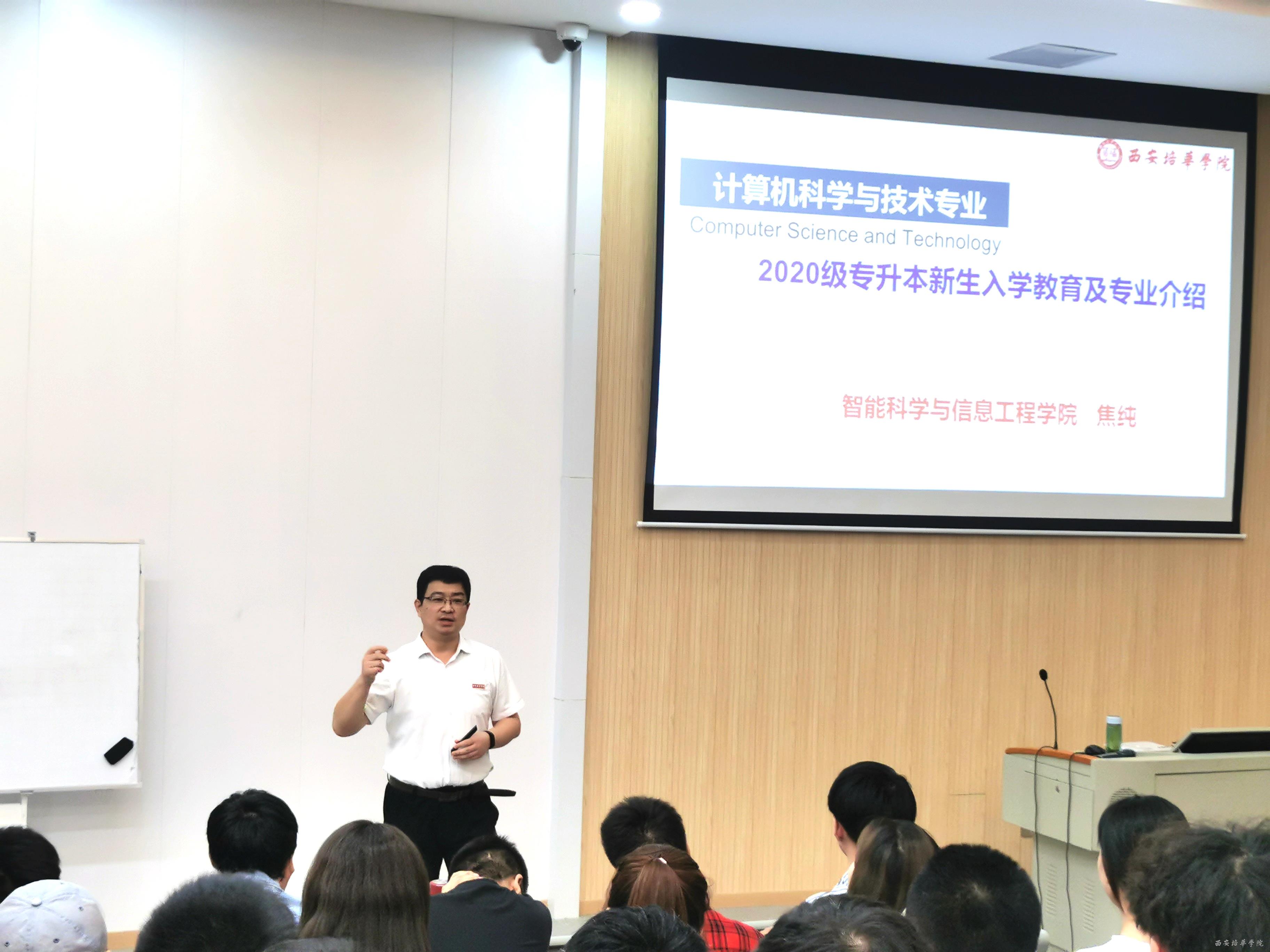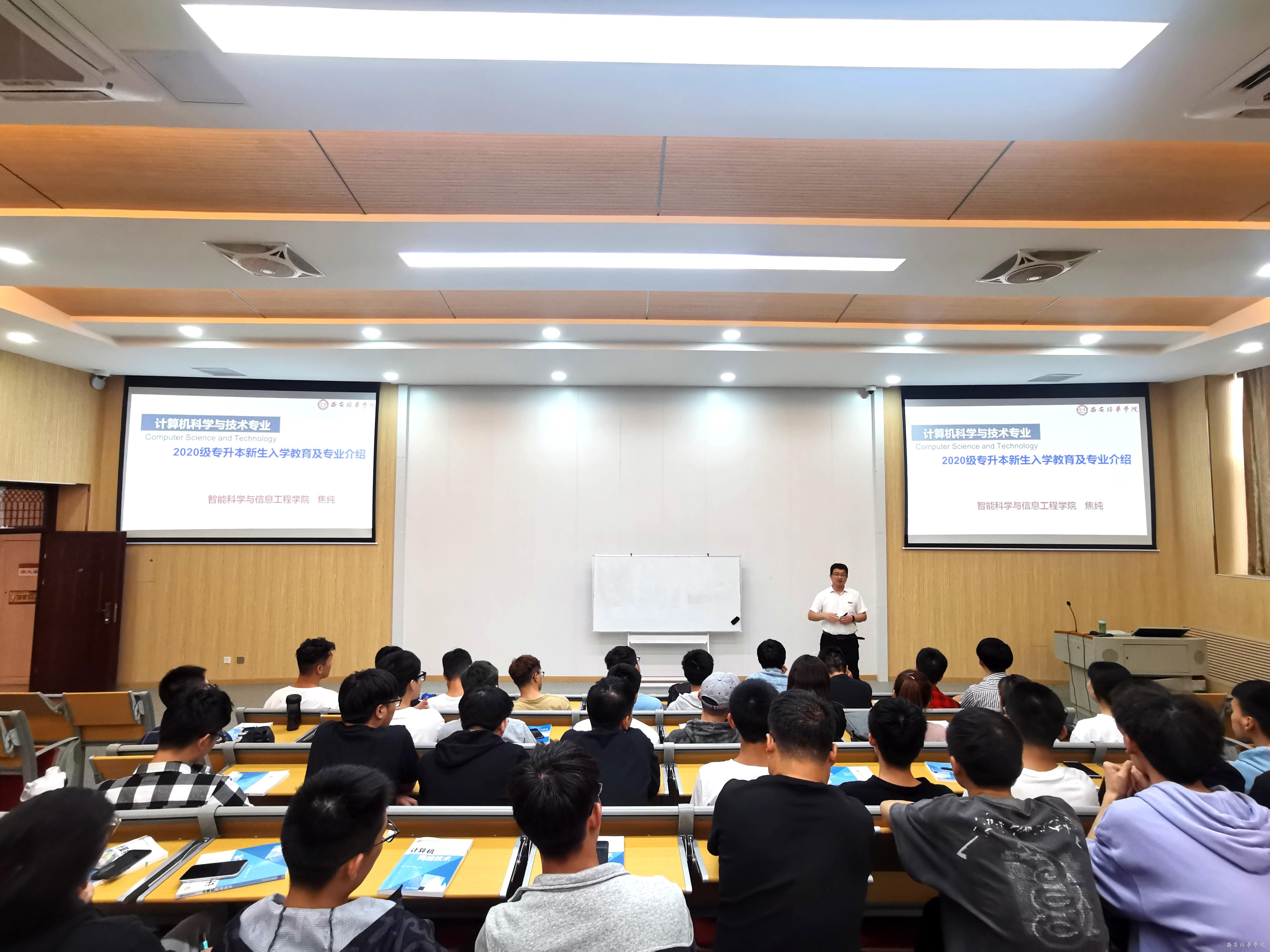2020级计算机科学与技术专业新生中,包括应届本科生166名和专升本新生38名。该专业2020级新生人数达到了204人,分为了五个班次。为保证教育效果,在精心准备的基础上,计算机系主任、计算机科学与技术专业带头人焦纯教授分别在2020年9月25日上午和下午,分两个场次分别为该专业2020级本科生和专升本新生开展了专业思想教育。