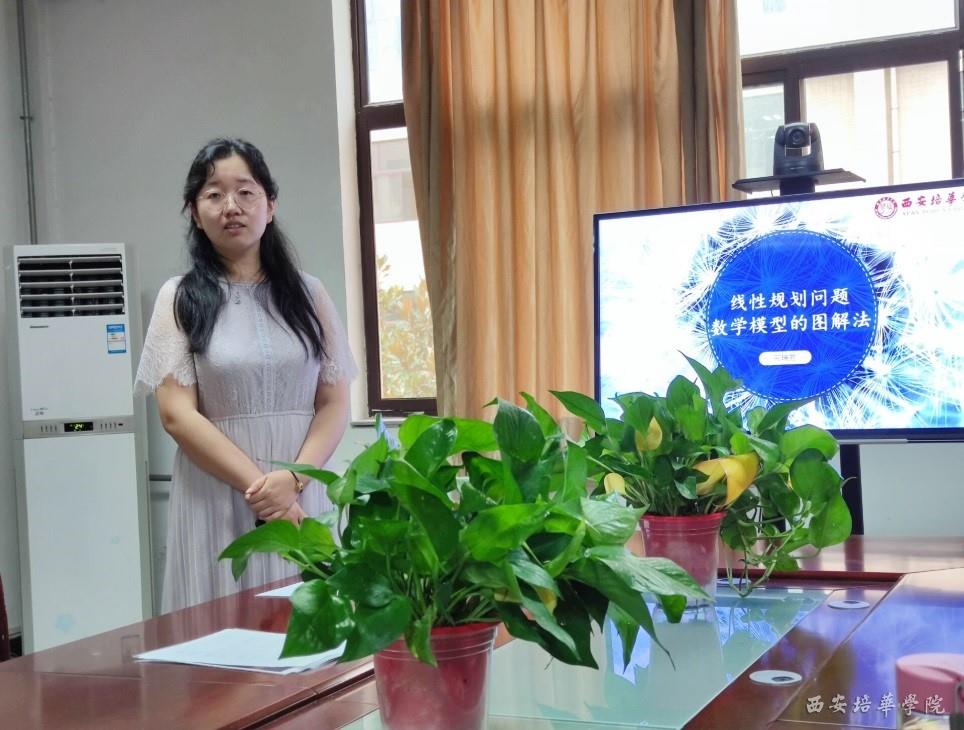 在本次公开示范课观摩活动中,邢瑞芳老师以线性规划问题数学模型的建立为题,将实际问题抽象为数学问题,通过教师的配音案例激发学生的学习兴趣,引导学生进行讨论,教学过程中应用BOPPPS教学法、4F引导法、云班课等多种教学法,设置一问题一台阶,做到一问题一汇总,阶梯式的教学内容设计,解决学生听课疲劳期,让学生经历螺旋式思维的碰撞最终看清问题的本质,培养学生数学思维意识及计算能力,提高学生运用数学规划解决实际问题的能力。邢瑞芳老师从教学设计、课堂管理、教学方法等多方面进行探讨,课堂准备充分,上课思路清晰,节奏合理,逻辑性强,通俗易懂,增强学生对知识点的理解、难点的把握,结合学科前沿,注重对学生创新思维培养,课堂教学富有吸引力和感染力,使我系的全体教师都获益匪浅。