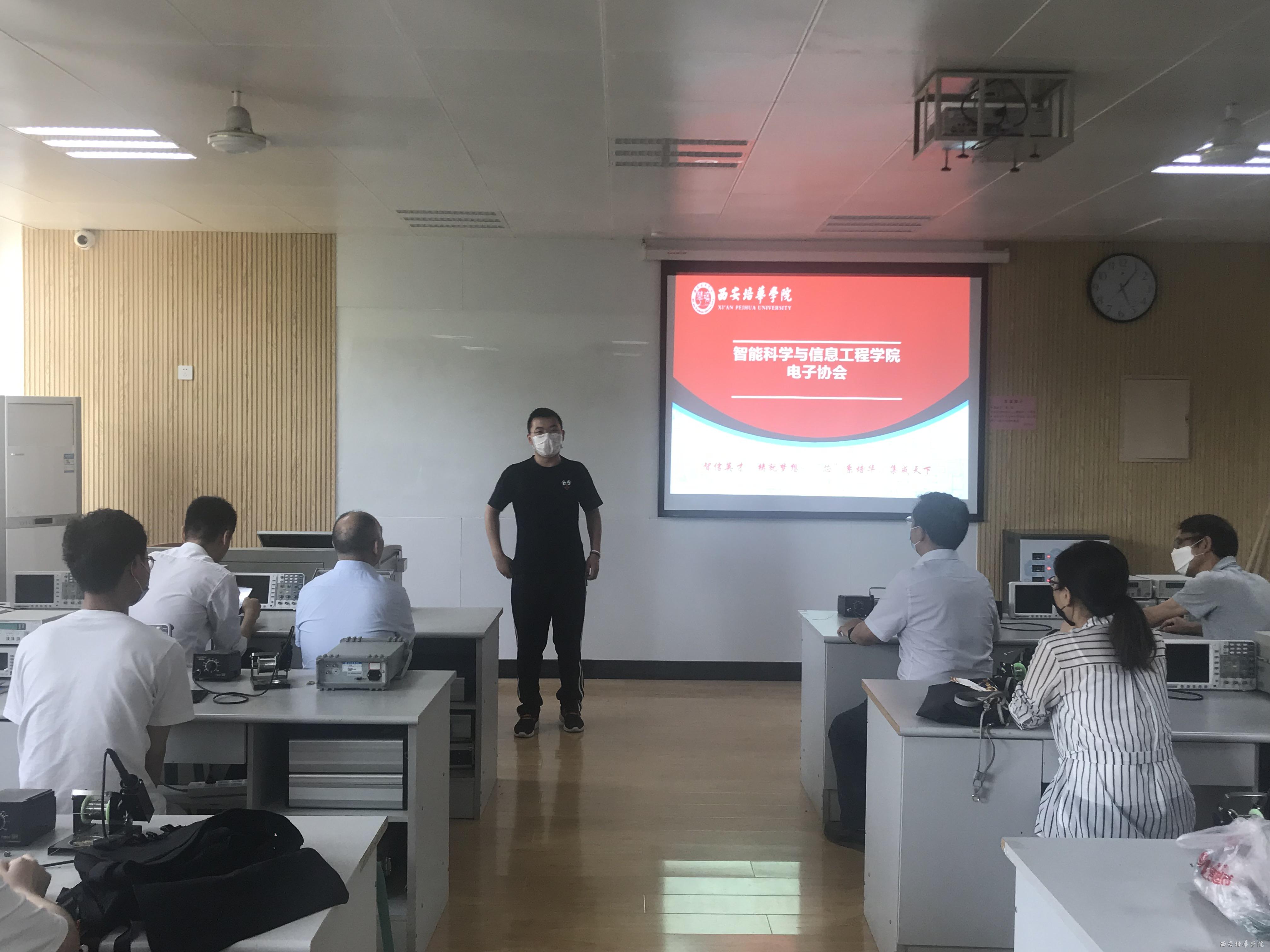 首先徐进老师介绍了电子协会的组建过程及今后主要工作内容。他说到:我们电子协会的成立,是围绕电子产品设计大赛开展系列活动,从而引导我院学生能够拥有充分的电路设计能力,为以后比赛、就业等方面打下良好的基础