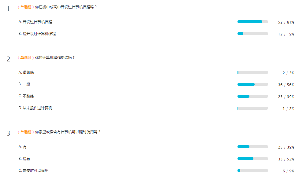 课前:为了掌握学生的计算机水平,她设计了问卷调查,初步了解学生对计算机的掌握情况。同时,通过云班课平台上传了第一阶段教学的相关资料,包括教学大纲、开课说明、教学计划以及前三周的预习资料等。其中,预习资料涵盖了三部分内容: