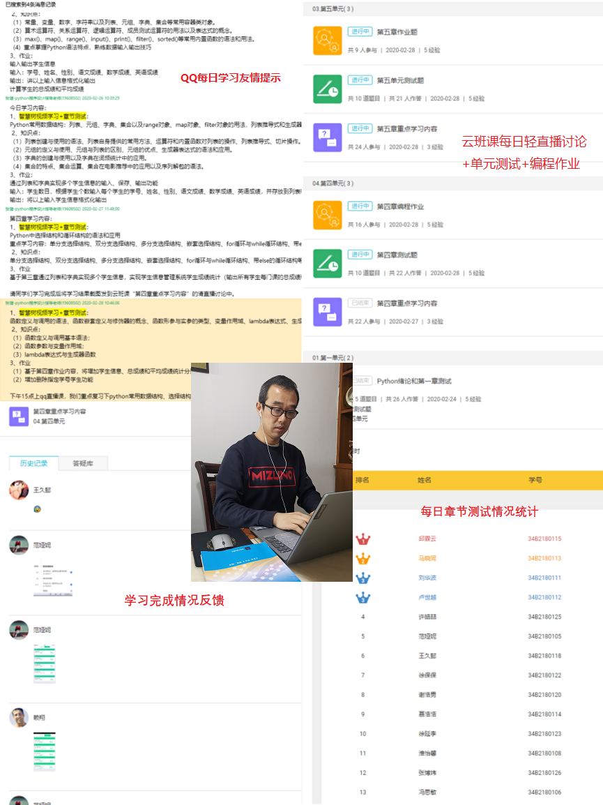张健老师的《Python程序设计》课程教学主要采用智慧树线上课程+QQ直播+云班课的混合式在线课程教学模式。