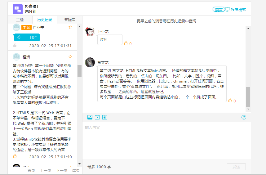 3、学生根据每日计划完成智慧树线上课程学习和测试,并在轻直播讨论区发送学习完成截图,指导教师为已完成的学生进行手工签到。