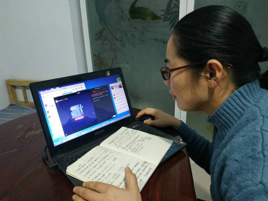 王金环老师积极响应国家和学校“延期不延学”的号召,因疫情被困山东老家,在教学会议中王金环老师谈到:家中“无书、无网、无电脑” ,当时心中有点慌,感觉无所适从。心里就自己给自己鼓劲加油,有什么困难就克服什么困难,没有条件就创造条件,很快就找到了突破口,手机就是法宝,随即就开始实施“借电脑,连热点,学方法”。积极向领导和同事不断请教网课的方法和技巧,学习直播平台,学习网课设计方案,建群把宝宝和老公拉进群当学生,课下不厌其烦的一遍遍测试课堂效果就为确保良好的课堂效果。这次网课即充满体验又充满挑战。