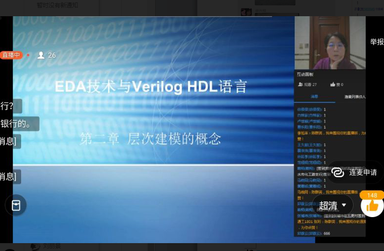 学生参与讨论发言,较为踊跃,绝大多数班级签到率为100%,极少数学生由于网络不佳出现晚签到的情况老师也都及时处理。学生的学习效果无论从听课状态、从语音留言、视频图片均可以反映我院教学效果目前来看总体状态较好。我院老师均应急转为QQ直播腾讯课堂、钉钉、微信群直播等,确保教学过程顺利完成。