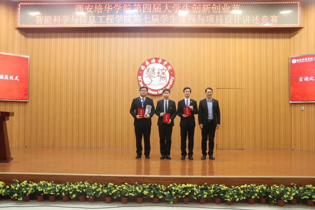 2019年12月23日,我院在明德楼报告厅举办了“第七届学生课程与项目设计讲述竞赛”决赛。莅临本次比赛的嘉宾有西安培华学院校长助理、产学研协同创新中心主任秦海峰、财务总监薛清、产学研协同创新中心副主任刘斌、产学研协同创新中心薛舒凡以及我院程国建院长、田孝华副院长、党总支书记兼行政副院长南兵和计算机系主任焦纯、基础系主任毛莉君、电子系主任徐进等老师。本次比赛由智能科学与信息工程学院学生会、创客中心创新实践苗圃与软件协会通力合作、共同举办。本次活动由常乐乐主持。
