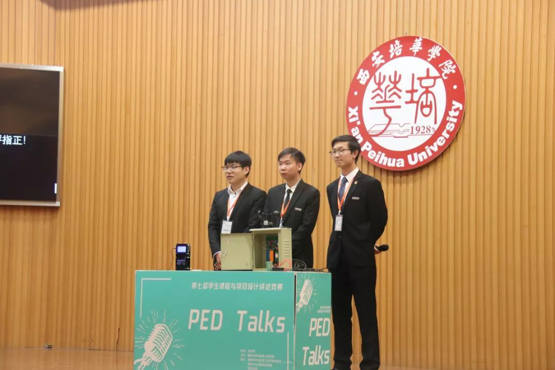 “PED Talks(Talks in Engineering Design of Peihua University)”, 竞赛过程包括团队组建、产品设计、技术开发、样机试制、现场路演、作品演示、专家答辩等环节。“第七届学生课程与项目设计讲述竞赛”在近一个月时间的准备后,最终共有八组学生的课程设计项目脱颖而出,成功进入决赛。