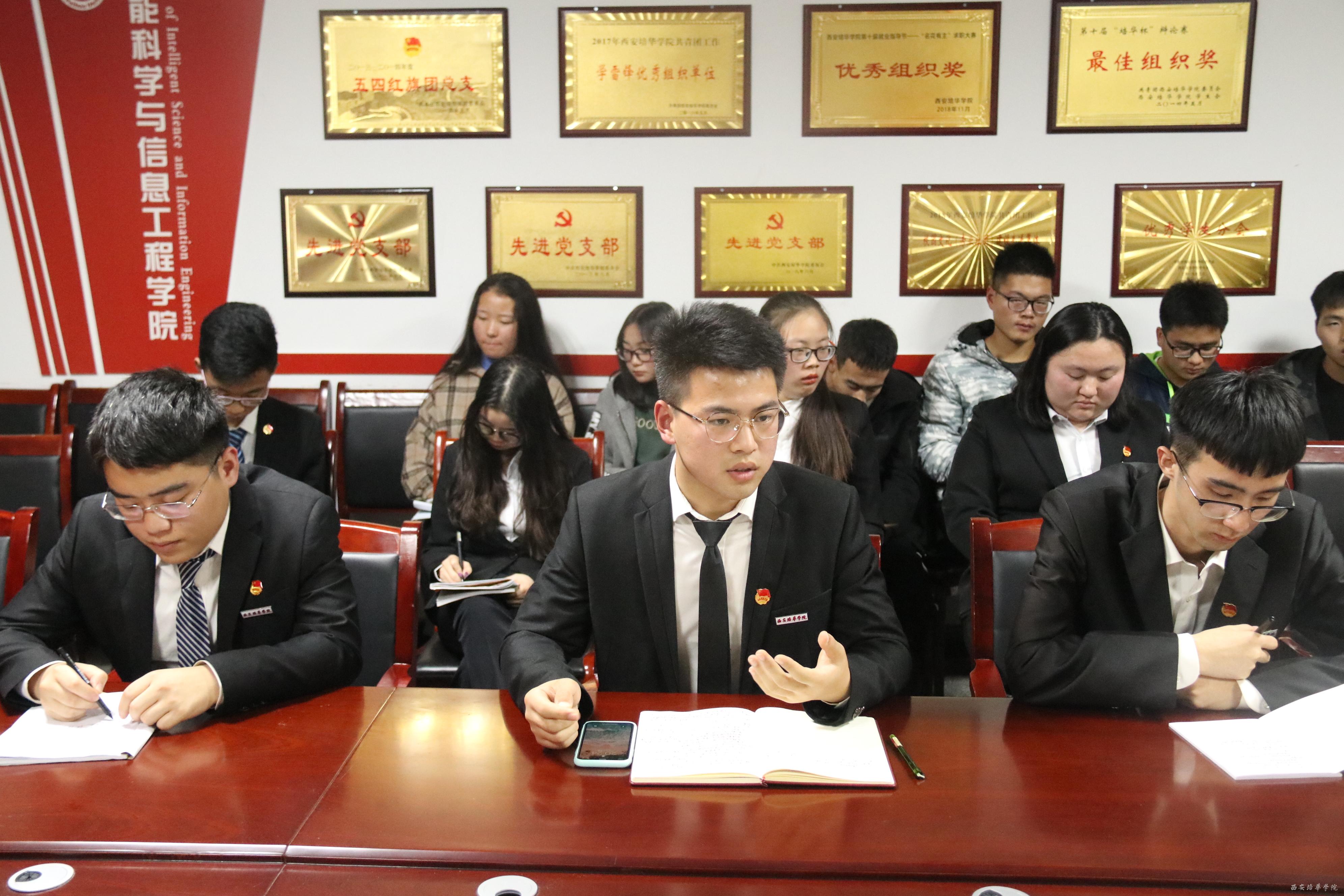 我院学生会主席团成员做会议总结