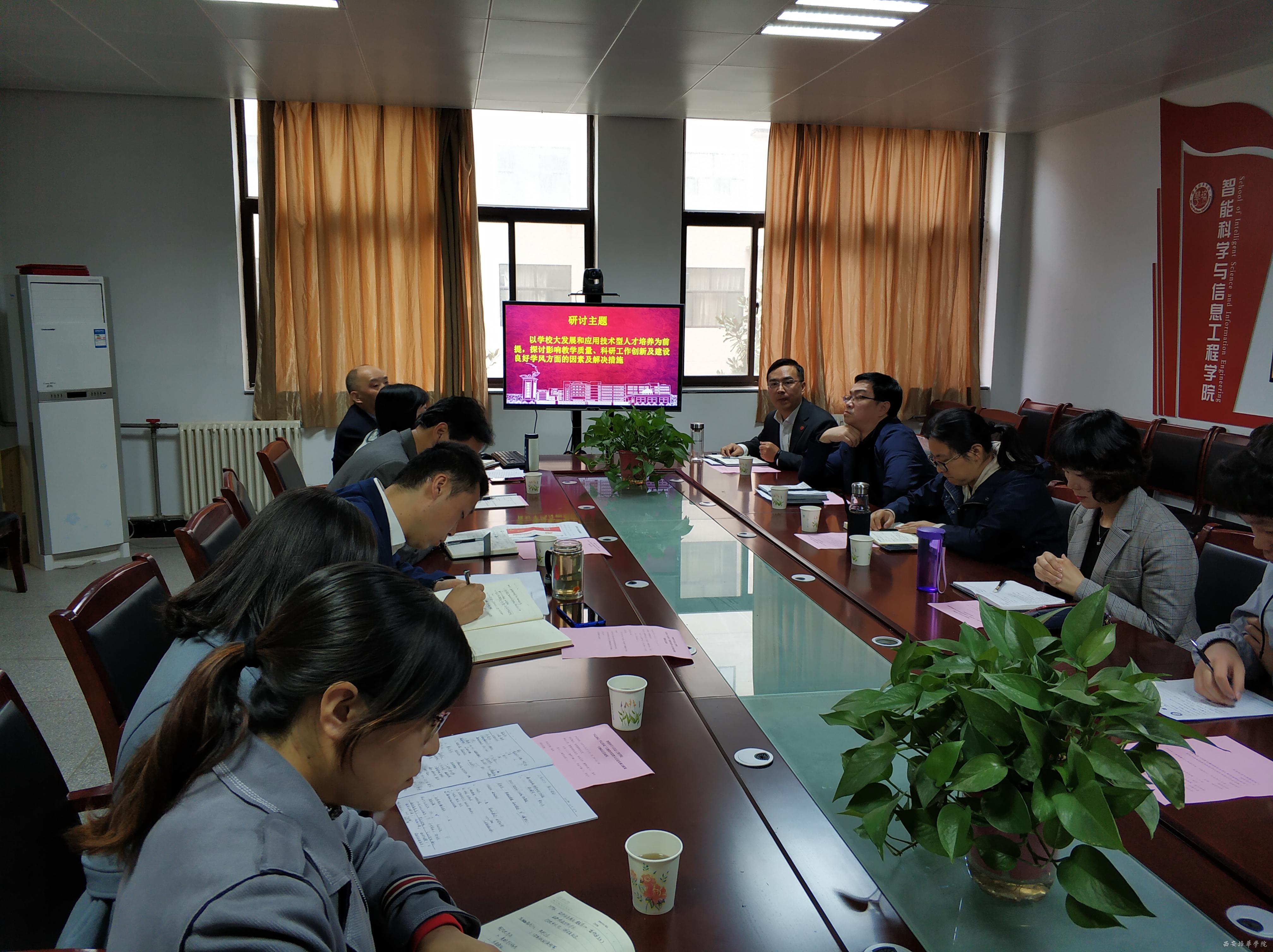 会议开始,全体参会人员共同学习习近平在“不忘初心、牢记使命”主题教育工作会议上的重要讲话。南兵同志传达了校党委关于印发《“不忘初心、牢记使命”主题教育思想大讨论及建言献策活动方案》,希望到会的所有领导、教师和学生们能够以发展为目标,进一步解放思想,更新观念,厘清思路,明确目标,充分发挥集体的智慧、发挥全体教职工的主动性和创造性,结合学院学科建设、教育教学管理、科研创新、人才培养方案制定、一流专业建设、专业工程认证等重点工作,“以学校大发展和应用技术型人才培养为前提,探讨影响教学质量、科研工作创新及建设良好学风方面的因素及解决措施”展开专题研讨。
