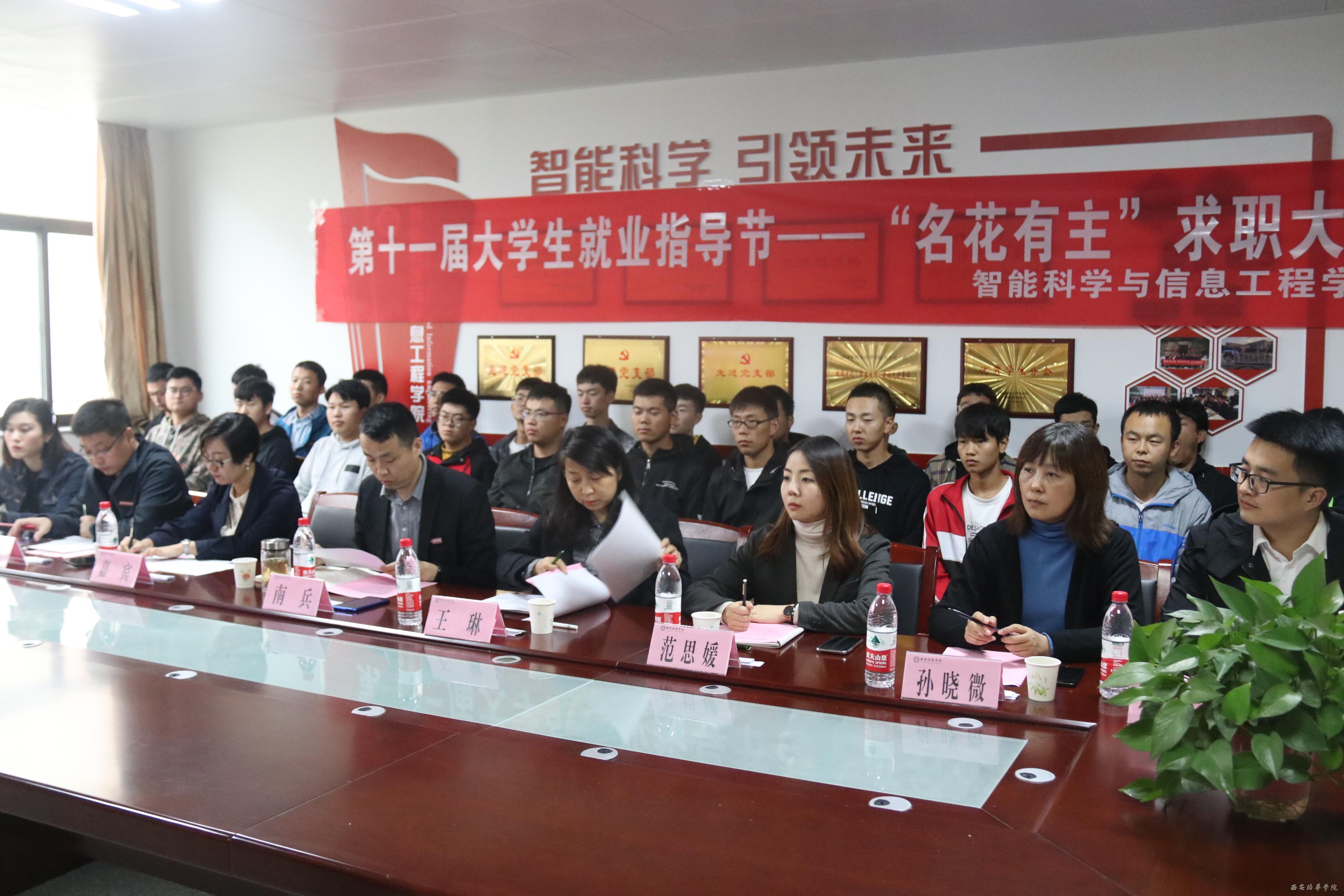 参加本次活动的嘉宾有陕西中易联信息科技有限公司人事部经理张珍珠老师、招生与就业指导中心副主任王琳老师、智能科学与信息工程党支部书记兼行政副院长南兵书记、党务干事孙晓微老师、分团委书记范思媛老师、学生干事王伟平老师以及辅导员姚诗雨、杨桂锋老师。