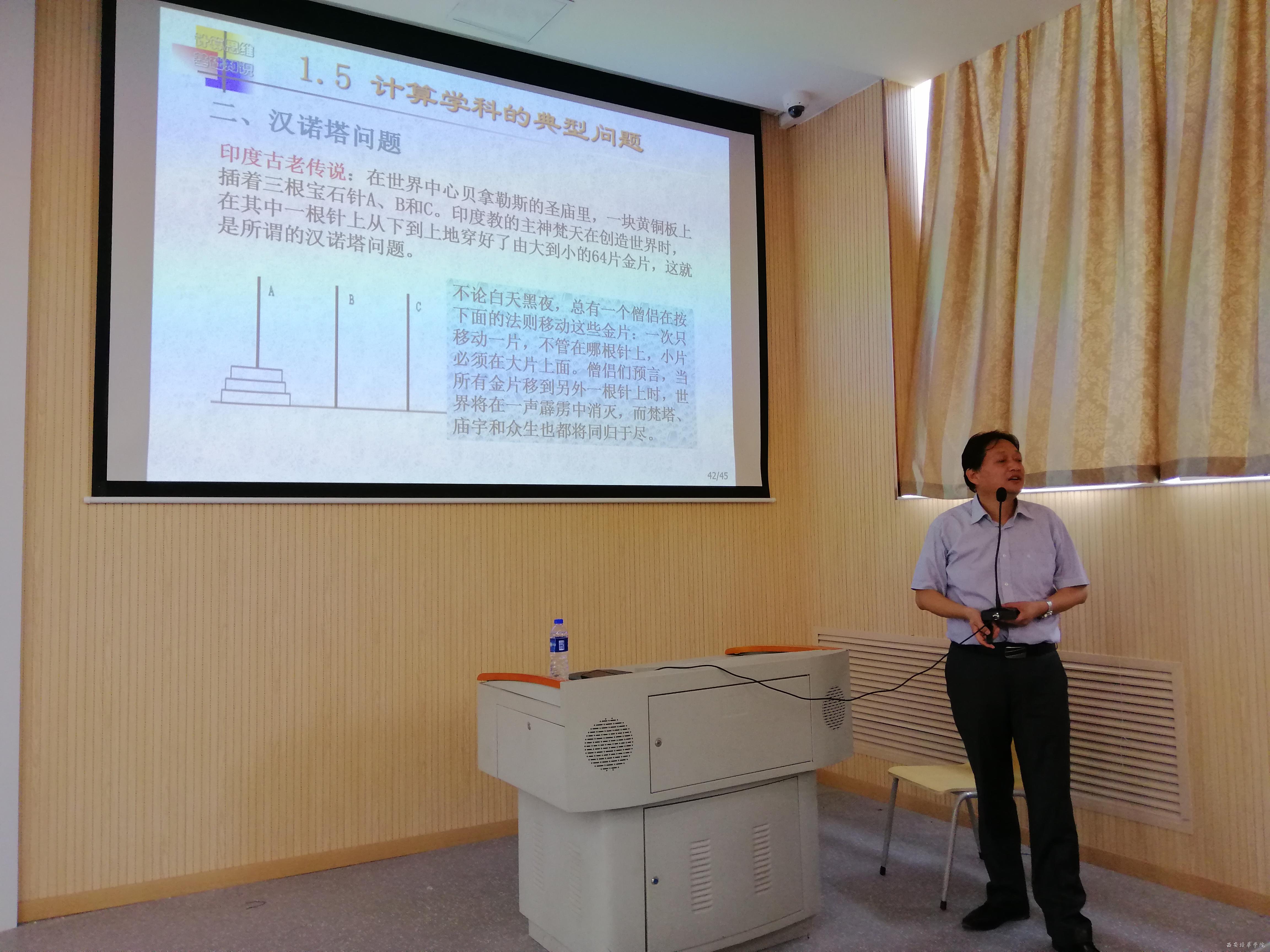在科学与计算科学方面,院长讲述了计算机科学(Computer science)与计算机学科的(Computer Discipline)的区别。计算机科学(Computer science)又分为:理论计算机科学、应用计算机科学。计算机学科(Computer Discipline)即计算机科学与技术,它是研究计算机的设计与制造和利用计算机进行获取、表示、储存、处理、控制等的理论、原则、方法和技术的学科。同时讲述了计算思维的概念,其中,计算思维的特征:概念化,不是程序化;根本的,不是刻板的技能。