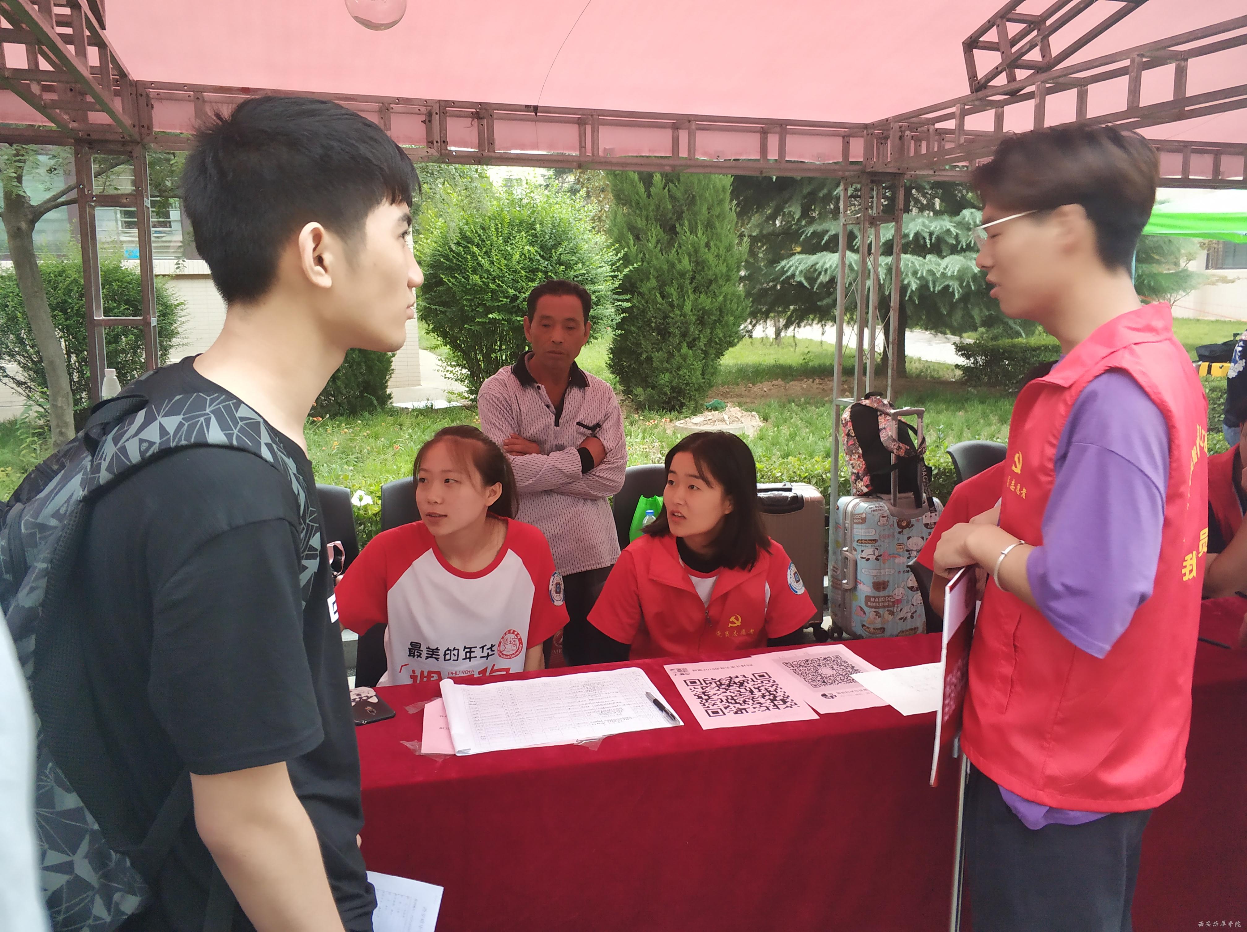 我院教师党员也参与到迎新的工作中,为新生解答专业知识,教授学习方法,使新生们对未知的专业领域充满憧憬。
