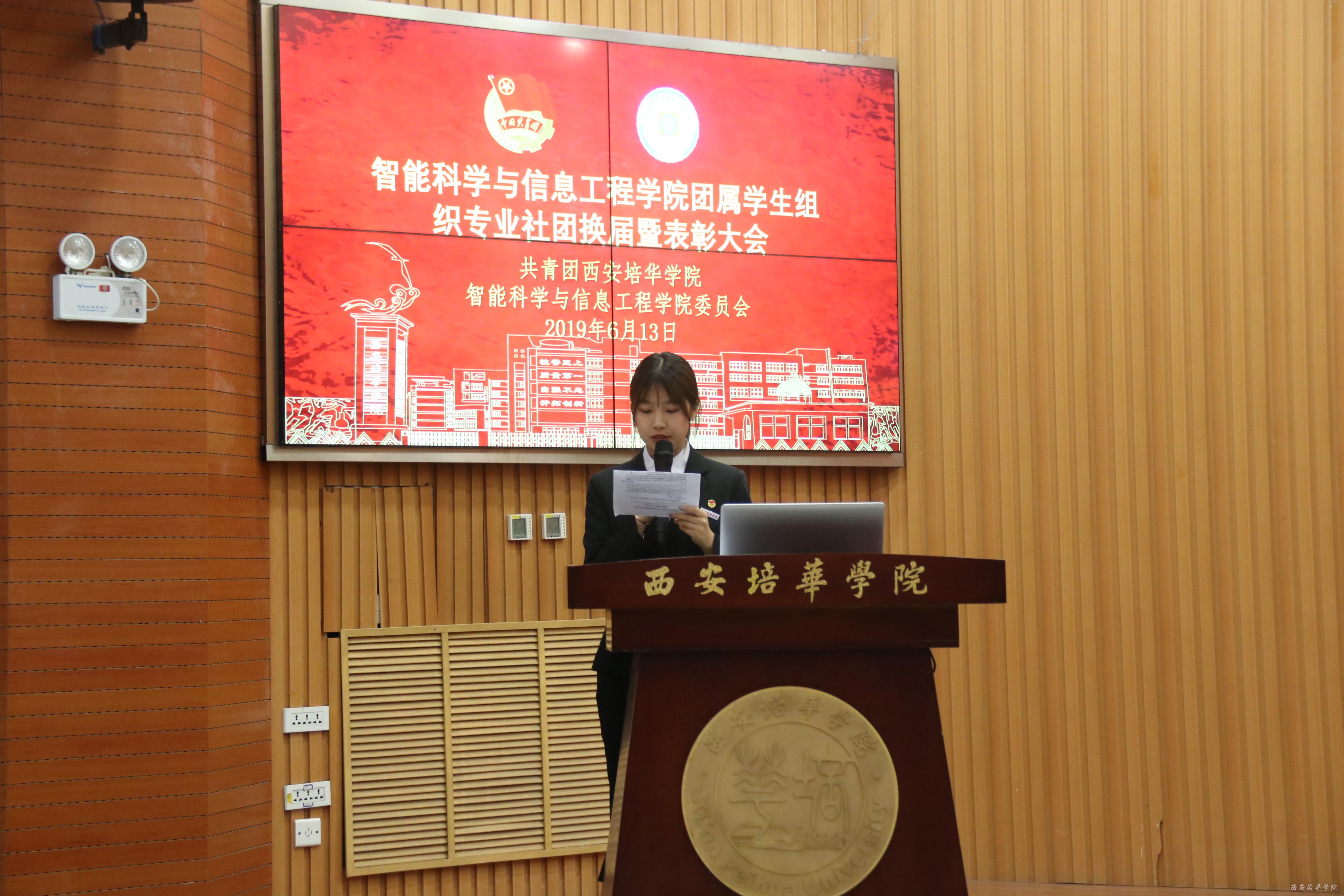 2019年6月13日18:30在西安培华学院明德楼四楼报告厅举办“智能科学与信息工程学院团属学生组织及专业社团换届暨表彰大会”。