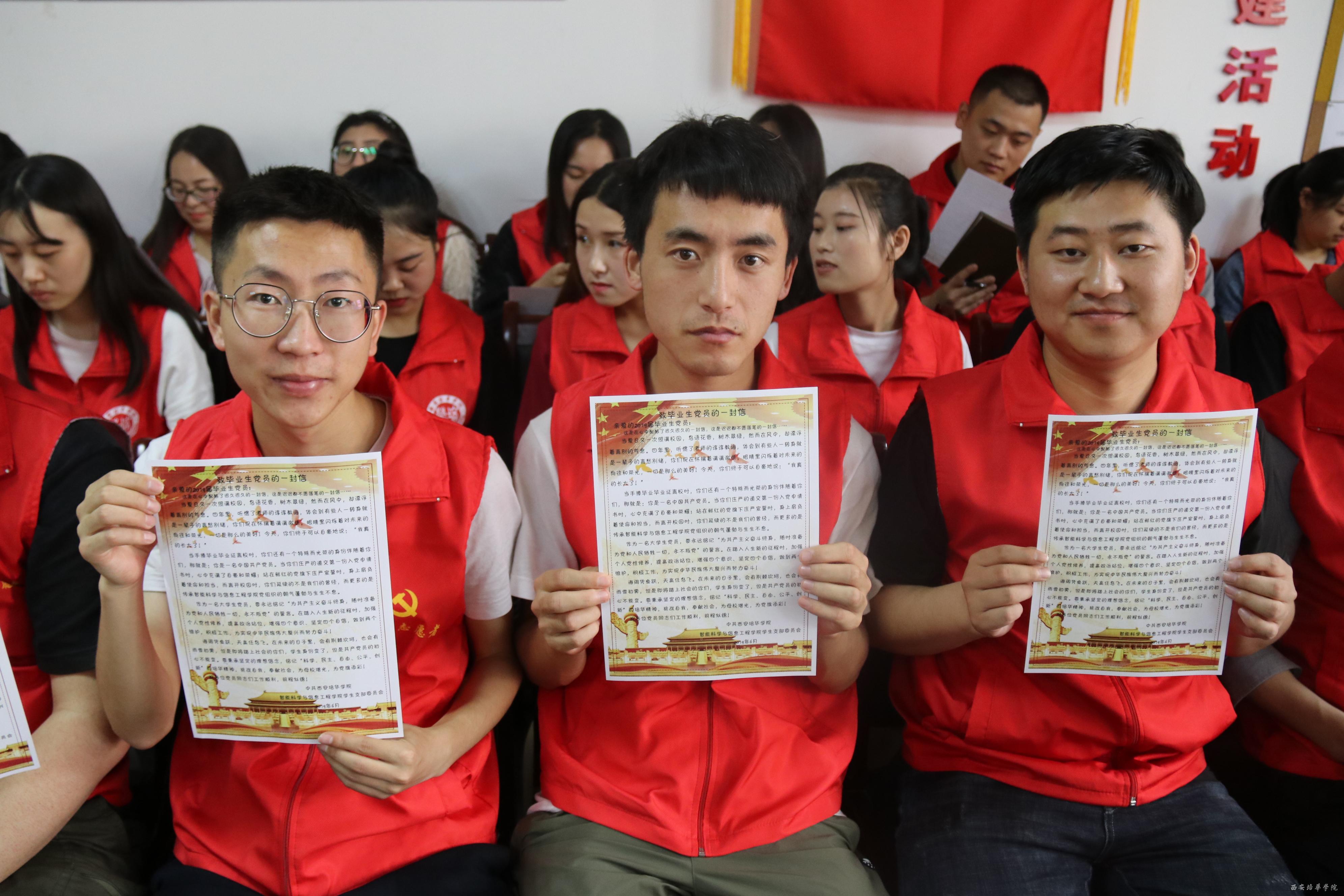 2019届全体毕业生党员再一次面向鲜红的党旗庄严宣誓。“我志愿加入中国共产党,拥护党的纲领,遵守党的章程,履行党员义务,执行党的决定,严守党的纪律,保守党的秘密,对党忠诚,积极工作,为共产主义奋斗终身,随时准备为党和人民牺牲一切,永不叛党。”铮铮誓词,拳拳之心。毕业生党员重温入党誓词,坚定理想信念,永葆党员本色,在新的起点开始新的征程,始终铭记不忘初心,继续前进,在发挥党员先锋模范作用中实现人生价值和理想。