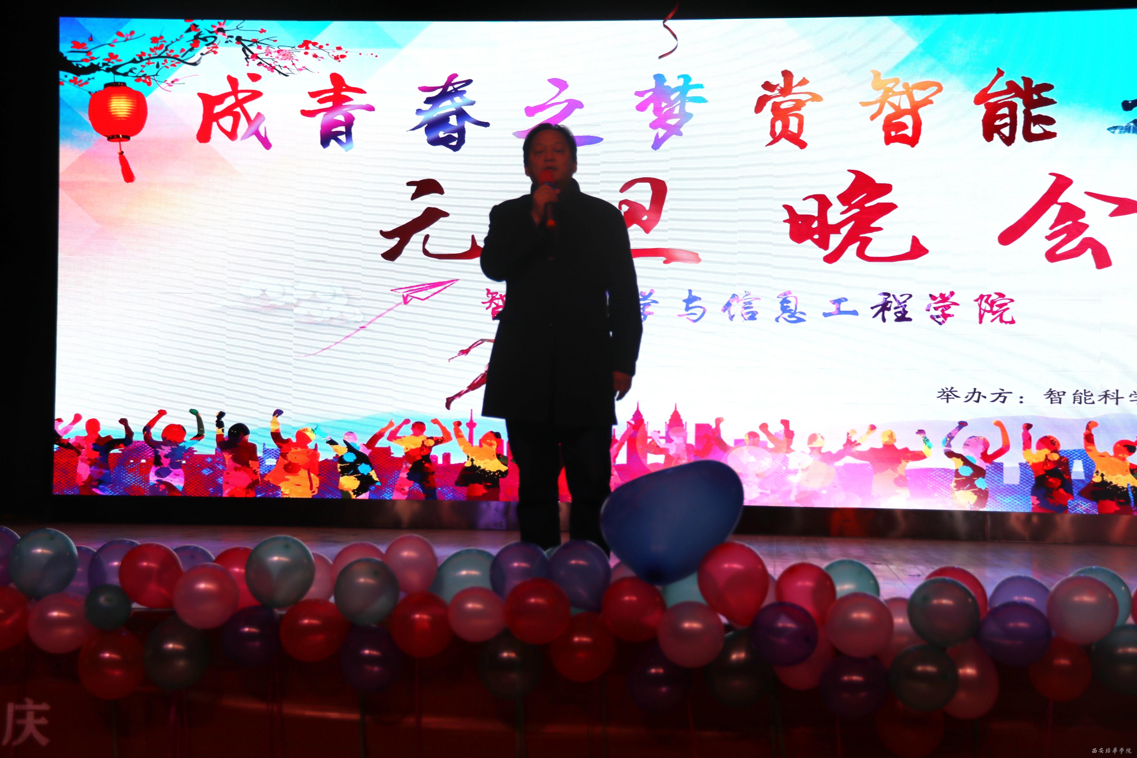 暖冬之夜,共迎新春。2018年12月28日19:30,智能科学与信息工程学院“成青春之梦 赏智能之美”元旦晚会在大学生活动中心拉开帷幕。智能学院院长程国建教授、党总支书记兼行政副院长南兵、电子系主任徐进、基础系副主任陈文利、计算机系教师王京、党务兼行政干事孙晓微、团委书记范思媛、学生干事王伟平、辅导员老师等同四百名同学共同参加了晚会。