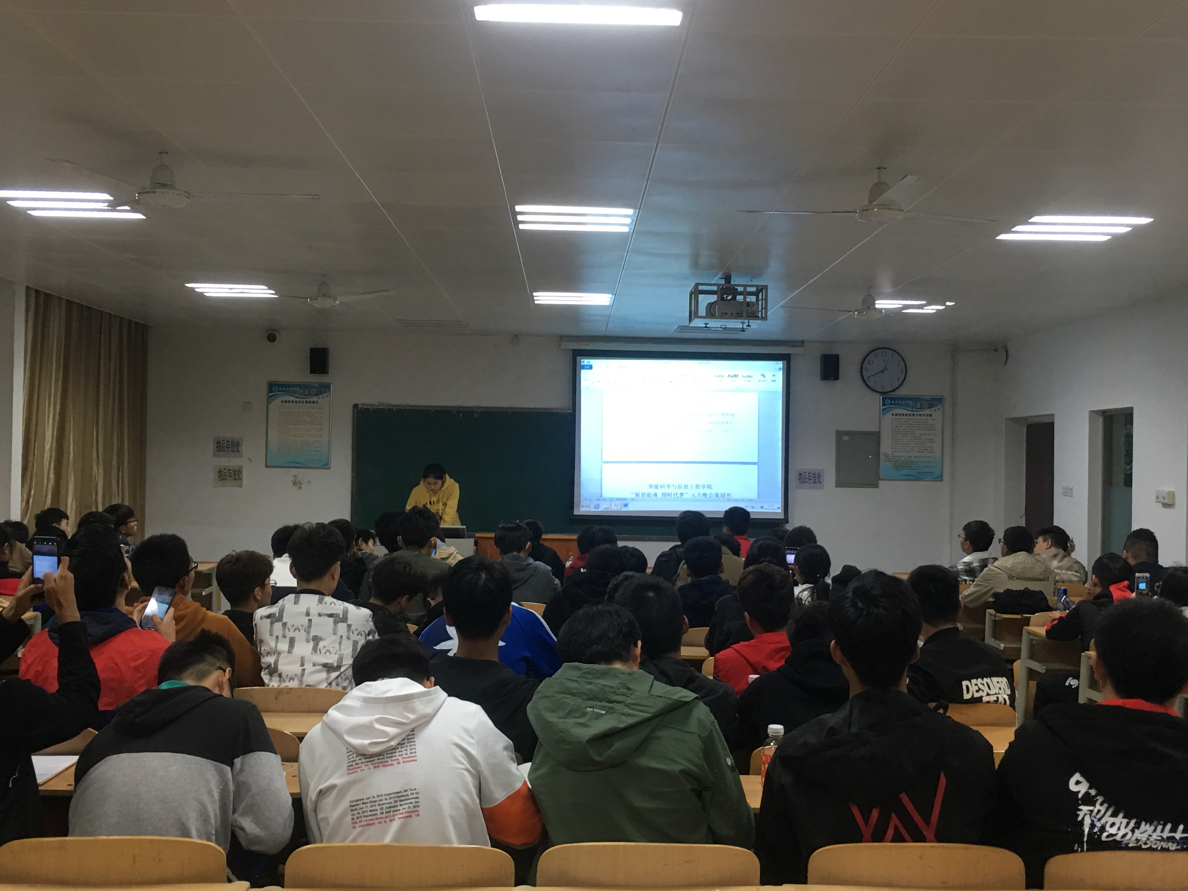 为加强我院团学各组织部门干事的语言表达能力、文字应用能力、新闻稿件的写作能力,进一步提升自身的综合文化素养,智能科学与信息工程学院于2018年10月22日19:30在育英楼3314教室为院系学生干部进行应用文写作(新闻稿件撰写)基础培训。