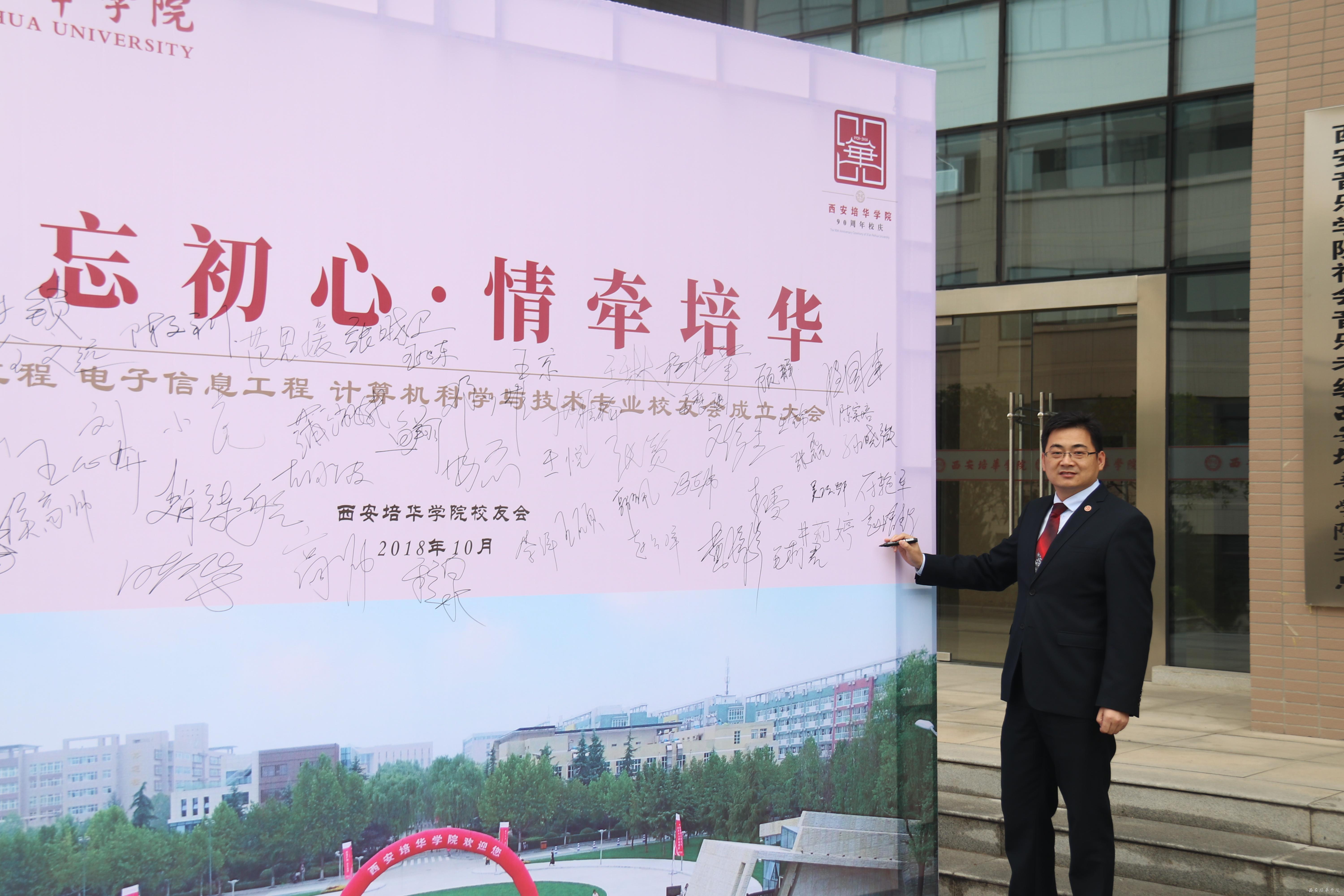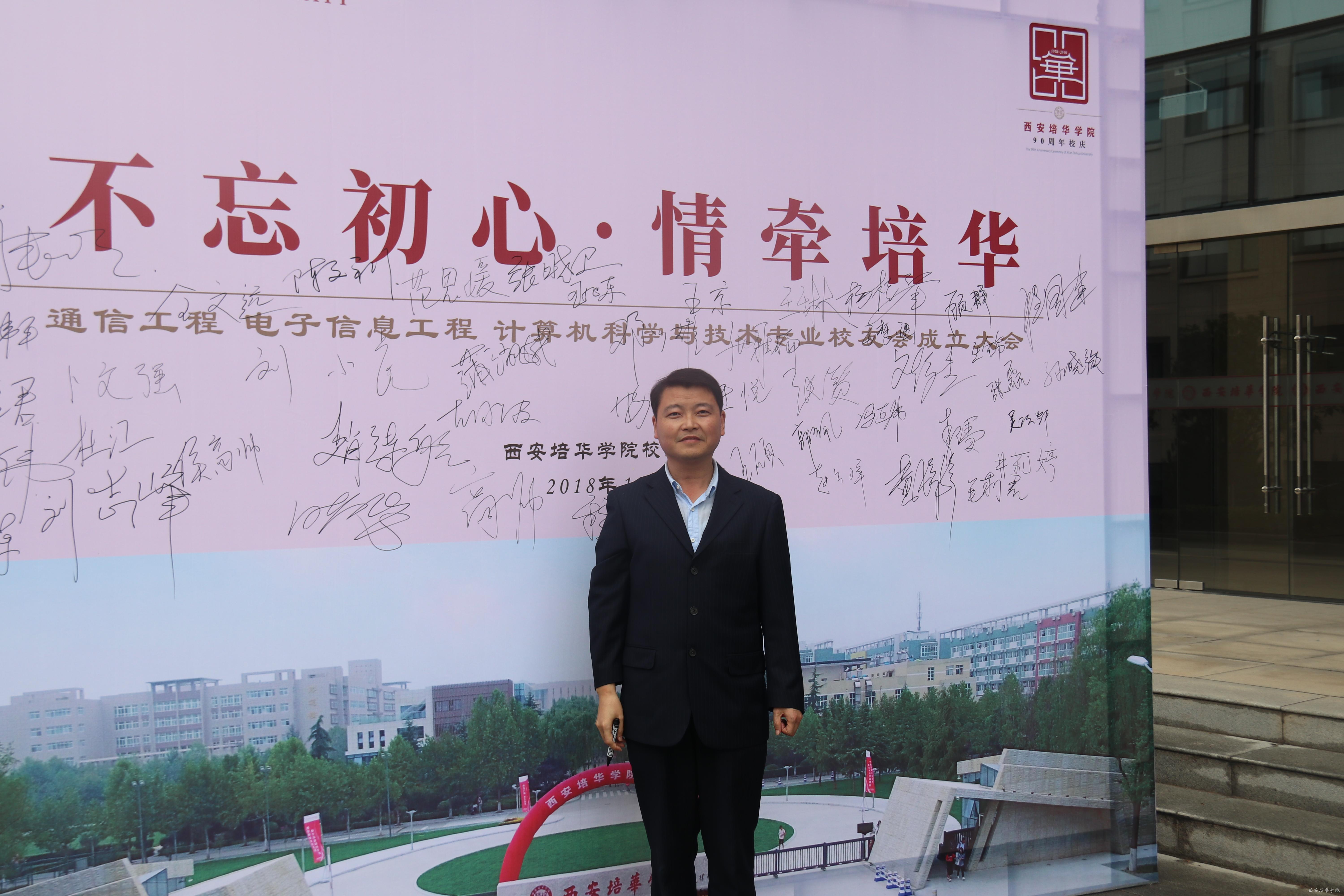 校友代表西安云火网络科技有限公司董事长张虎深情回忆了在培华四年的求学经历,培华深厚的人文情怀培养了他们为人朴实、基础扎实、工作务实、作风踏实的工作作风,使他们在各自工作岗位上得益于在培华所获得的丰厚的知识底蕴、坚强的自强自力精神和勇往直前的精神风貌。他说,母校是校友成长的摇篮和家园,校友是母校的名片和镜子,血脉相连,互为滋养,共生共荣。专业校友会的成立,圆了毕业离校培华人“家”的精神依托,搭建了一个母校、校友、社会沟通交流的纽带、成长发展的平台。校友在这里驻足相聚和交流,在这里追抚峥嵘岁月,展望美好明天。