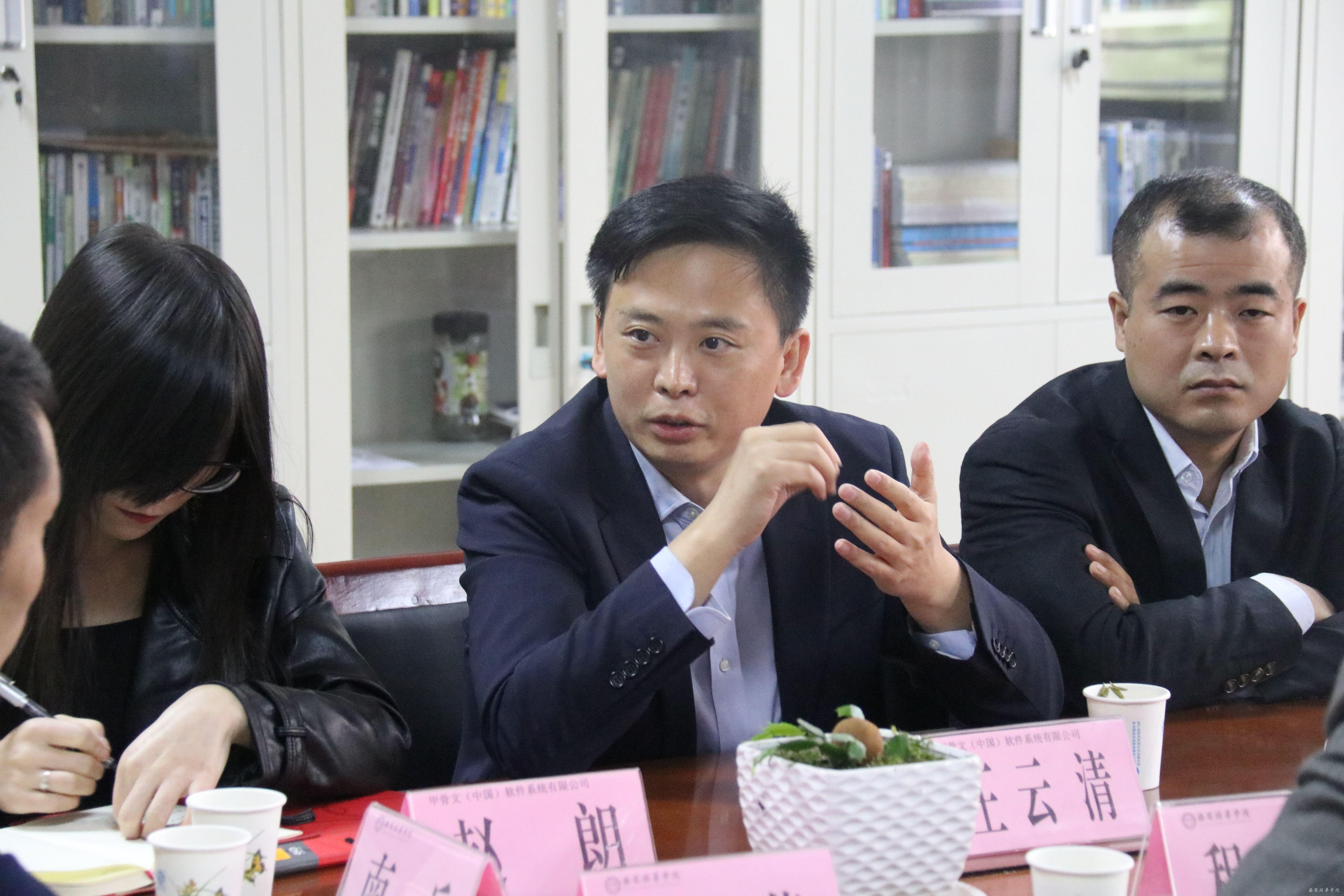 秦海锋助理代表学校对王云清一行的到来表示欢迎。他指出,西安培华学院坚持“产教融合”、“校企联手”的应用型实践性的办学思路,根据各学院的专业特色,贯彻“实践+应用”的教育理念,加强应用型课程改革和人才培养模式的改革与创新,突出学生应用技术能力培养,支持与知名企业展开广泛的、深度的合作,以适应学校转型发展的要求和国家对高校教育管理的总体思路。