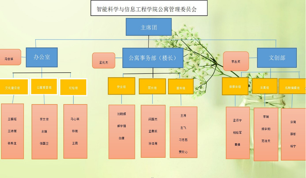 出席本次纳新活动的有:指导老师高珊珊老师、校学生公寓管理委员会白薇、王国宇同学以及各部门负责人。