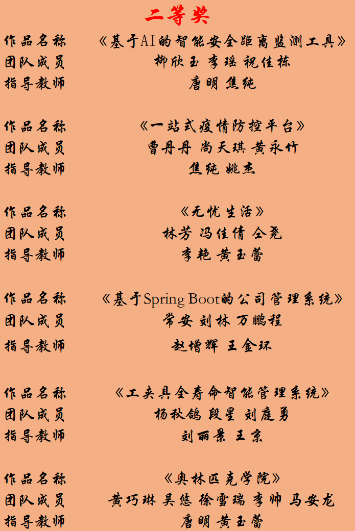 在本次计算机设计大赛中,我院参赛的同学和老师能够克服重重困难,认真打磨比赛作品,以出色的表现展示了我院学子的风采并荣获佳绩。正如老师所言:“创新引领未来,竞赛成就梦想。前路漫漫,任重而道远,唯有努力坚持,砥砺前行,才能方得始终。”预祝我院师生在未来能够一步步勇攀高峰、再创佳绩!