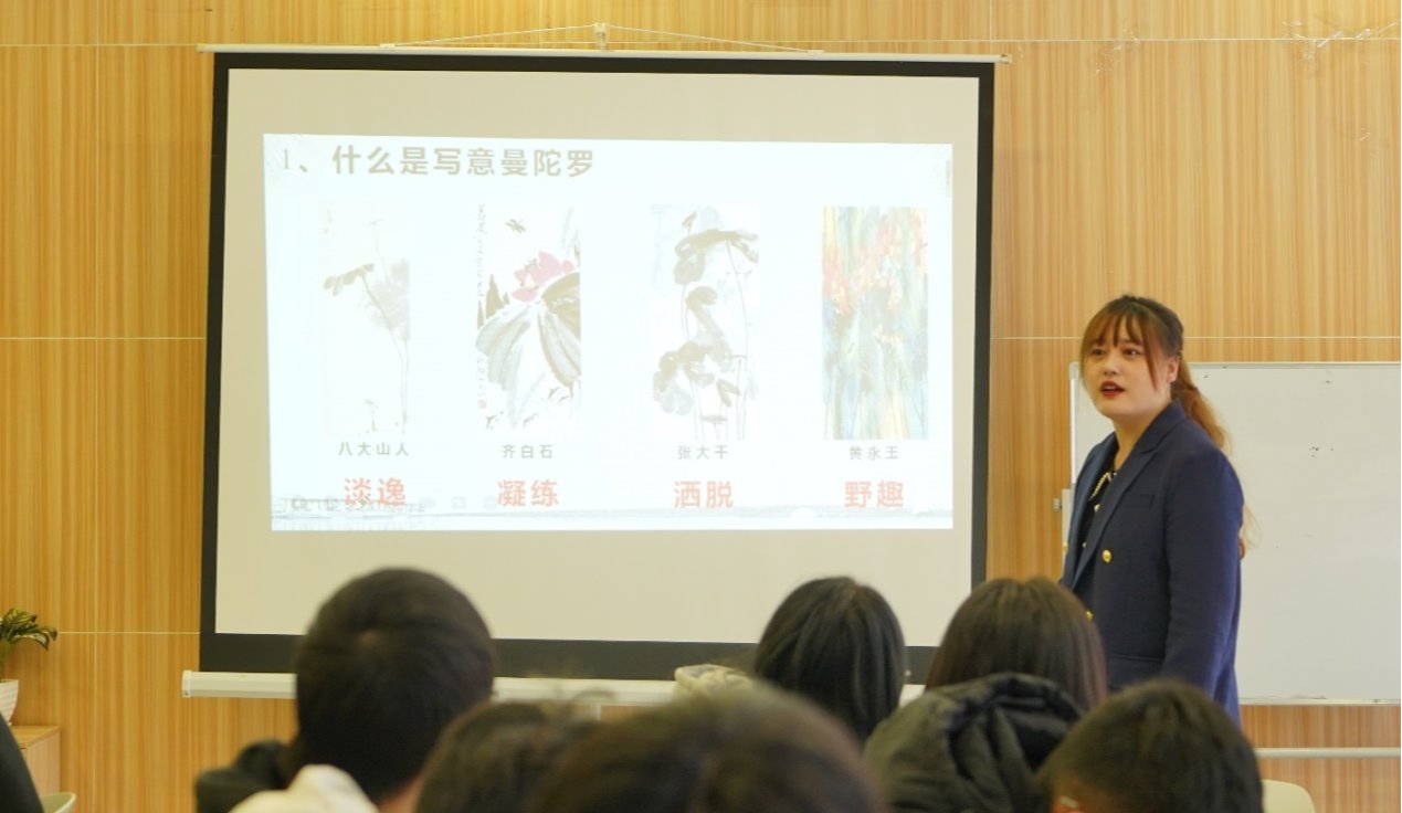 高老师引导大家闭上眼睛,通过手拍打膝盖、肩膀、头部等肢体动作,更进一步地放松自己。之后,高老师以讲座的形式为大家讲述了写意曼陀罗绘画的相关理论以及应用,并展示了他人在写意曼陀罗绘画上的独到见解。