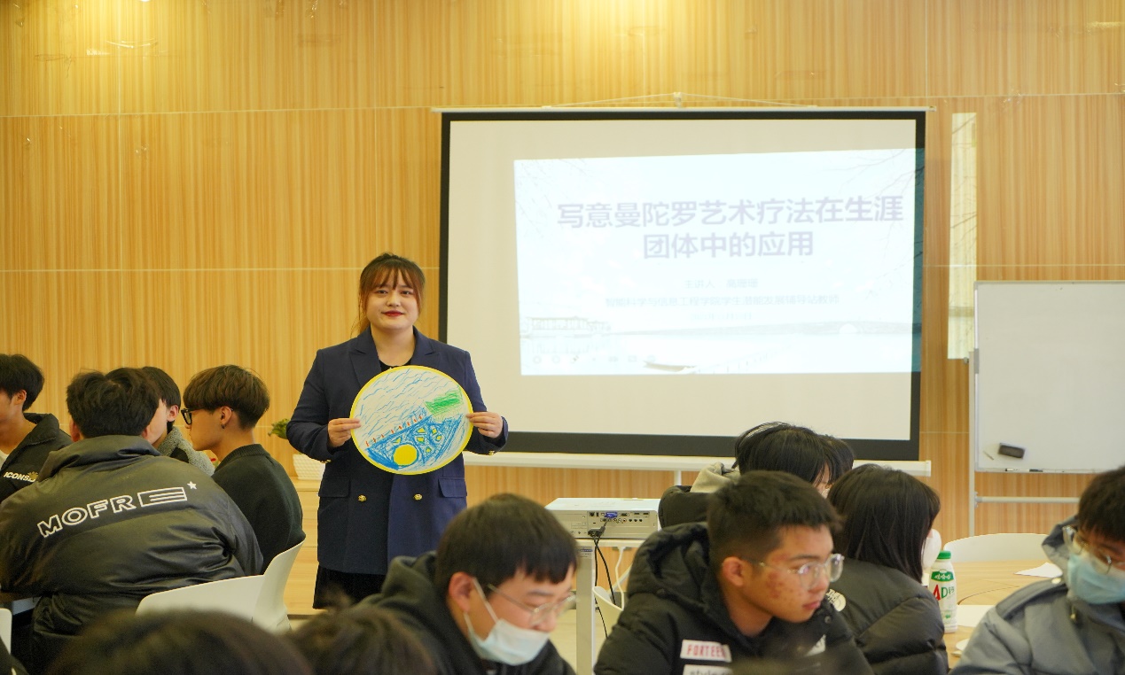 本期课程的团体导师为智能科学与信息工程学院、学生潜能发展辅导站教师高珊珊老师,智能科学与信息工程学院41名同学共同参与了本次活动,体验写意曼陀罗艺术的魅力。