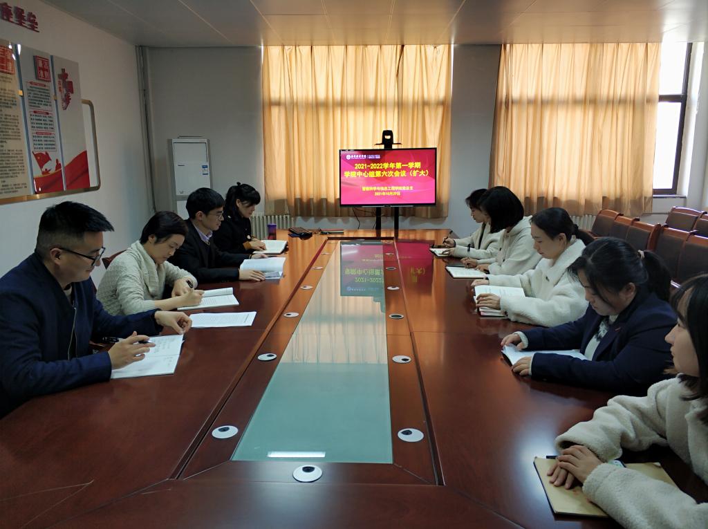 10月29日下午,我院党总支在院党员活动室召开学院理论学习中心组(扩大)2021年第六次会议,本次参会的有理论中心组全体成员、各支部书记、委员等,南兵书记主持会议。