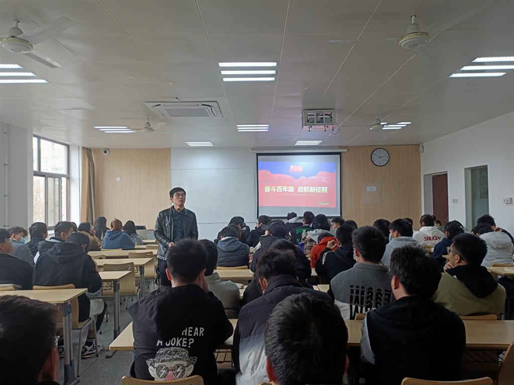 2021年12月1日,学院党总支副书记王林在3214教室为我院第46期入党积极分子进行了“奋斗百年路 启航新征程”党史专题党课。王林书记的党课通过“开天辟地”、“改天换地”、“翻天覆地”、“惊天动地”四个方面讲述了中国共产党创造的伟大成就:新民主主义革命的伟大成就、社会主义革命和建设的伟大成就、改革开放和社会主义现代化建设的伟大成就、新时代中国特色社会主义的伟大成就。
