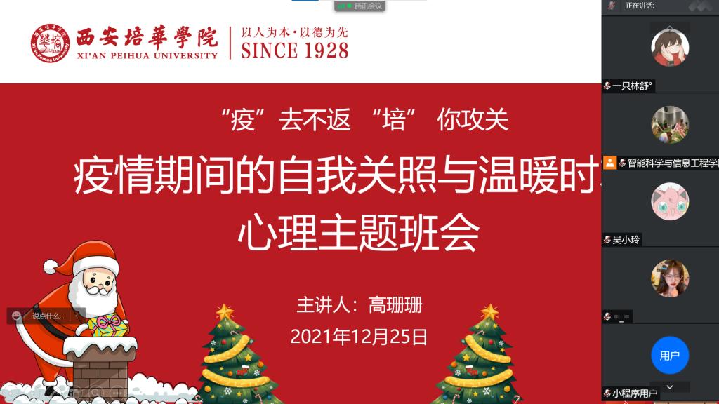 在全市上下奋起抗击疫情的关键时期,为更好发挥教育引导作用,提高我院学生的疫情防控意识,疏导特殊情况下学生的心理压力,激发我院学生的责任与担当。智能科学与信息工程学院开展了“疫”去不返, “培” 你攻关线上心理主题班会,本次会议由辅导员高珊珊老师主持。