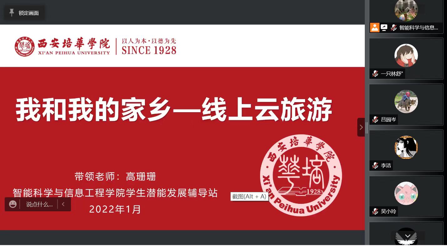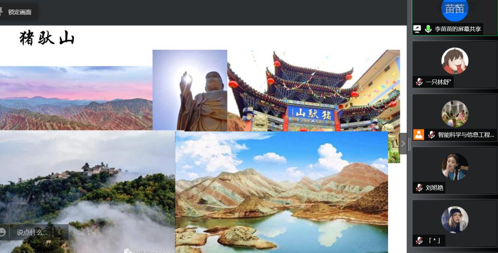 家乡,那个最温暖的地方,那个最让我们魂牵梦绕的地方。身处异地的各位同学,无时无刻不在想念家乡。为丰富我校学生隔离期间生活,2021年1月7日19:30-21:30在9#公寓和23#公寓,由学生潜能发展中心眼界生涯工作室主办,智能科学与信息工程学院学生潜能发展中心承办,线上云旅游——我和我的家乡(第二辑)在高珊珊老师带领下的如期而至,本期分享的同学为刘旭艳、李苗苗、马华旌3位同学,分别给大家带来新疆哈密、甘肃兰州、福建福安这三个美丽的城市分享,让我们来欣赏他们的精彩展示。
