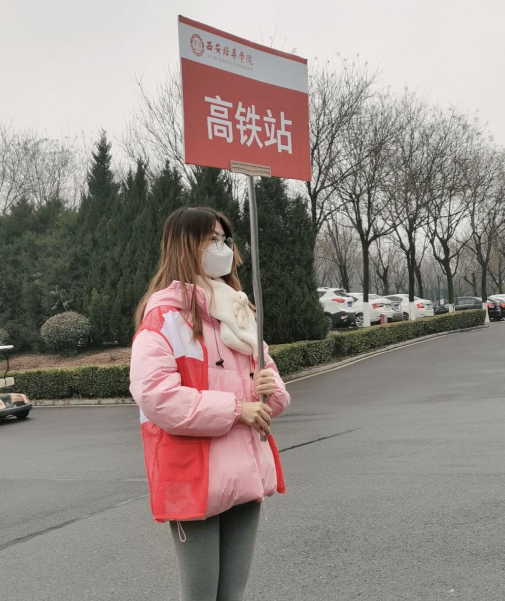 李香蕊的主要工作是在体育场维持好同学们做核酸的秩序,引导同学们间隔排队有序的进行核酸检测。在疫情得到缓解后,同学们也即将踏上返乡之路,为保障同学们顺利返乡,李香蕊又加入到返乡保障志愿工作中,为选择网约车返乡的同学们保驾护航,无论风雪仍然坚持到最后一班岗。