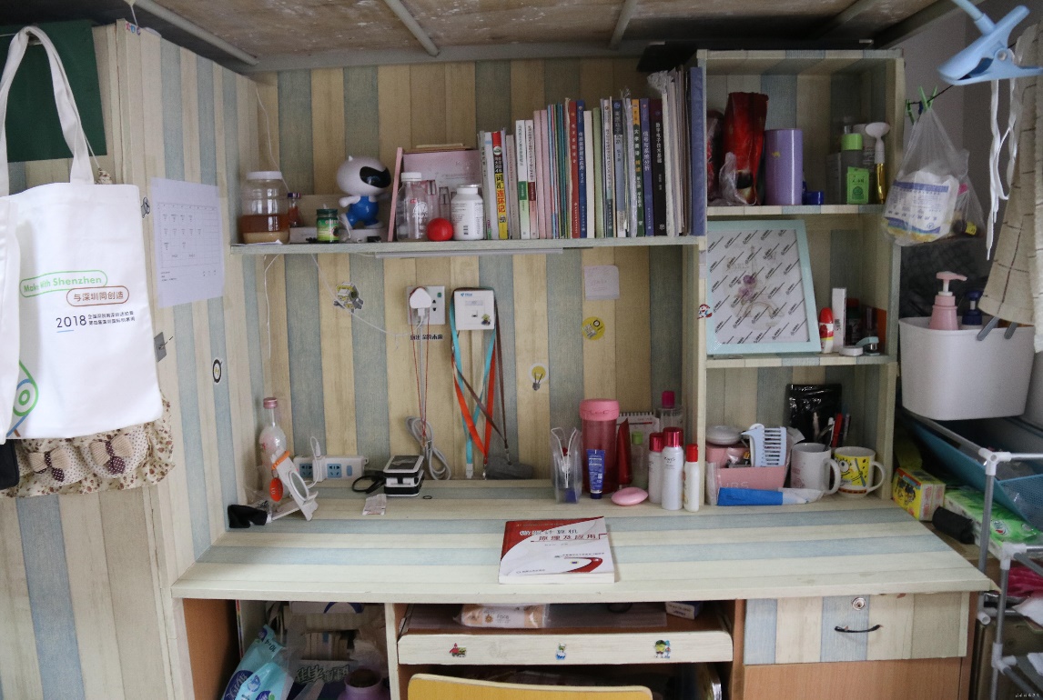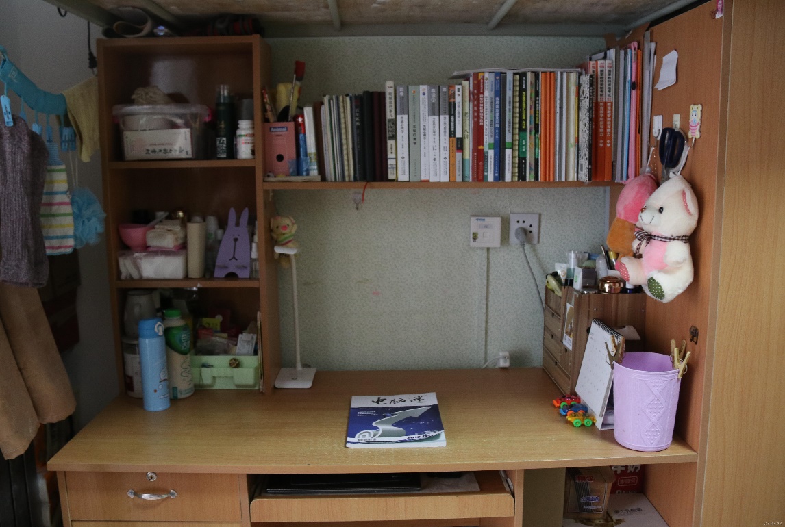 简简单单的宿舍在同学们的装扮下变得格外温馨,统一的门贴、漂亮的书桌、干净的卫生间、一尘不染的地板、整洁的宿舍散发着浓浓的温馨气息。