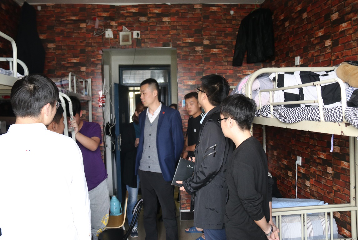 在学生寝室里,南院长与学生党员亲切交流,他强调,寝室是学生的生活场所,作为一名学生党员政治思想素质要过硬,党员先锋模范作用要突出,党员宿舍学习风气要浓厚,宿舍内务卫生要整洁。同时,必须严格遵守公寓管理规定,坚决禁止使用违规电器,共筑“整洁、温馨、文明、安全”学生宿舍。