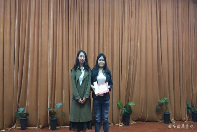 大会第二项,由党总支书记史立军和党务干事马悦老师为获奖学生颁奖。