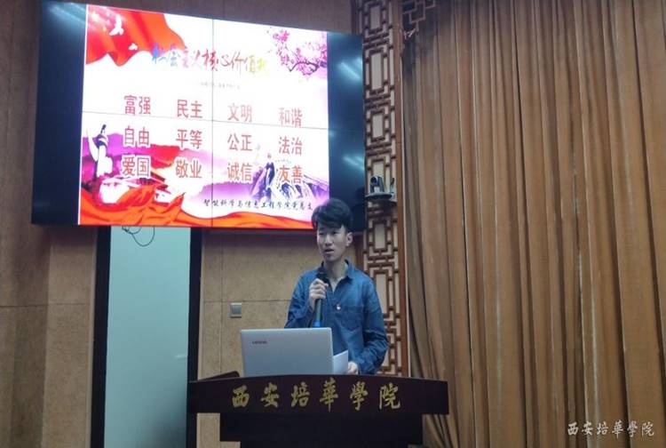 陈昕阳同学讲到:“伟大时代呼唤伟大精神。习近平总书记在指出,我们要弘扬社会主义核心价值观,弘扬以爱国主义为核心的民族精神和以改革创新为核心的时代精神,不断增强全党全国各族人民的精神力量。当今中国,取得了举世瞩目的发展成就,也面临着更高层次的机遇挑战。经济社会转型期的多元与多变,为社会注入强大活力的同时,也给人们的价值理念带来了不可忽视的冲击。”
