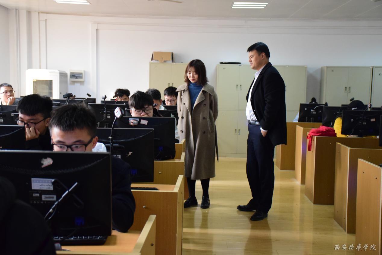 考试期间,团委书记范思媛老师、计算机系副主任唐明老师和王京老师带领软件协会考务成员对各个考场进行了巡视,对考生和监考成员进行了慰问。经过四个小时的认真作答,参赛选手们完成了自己的设计代码。此次校内预选赛将筛选出优秀学生将进一步接受培训,提升他们的逻辑思维能力、编程编排能力等,同时本次选拔赛脱颖而出的优秀学子们将代表学校参加省级蓝桥杯大赛。