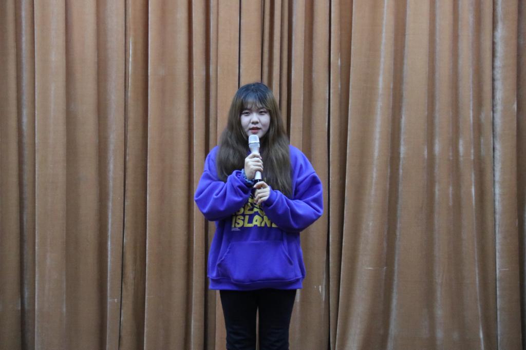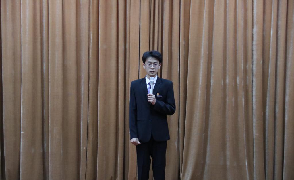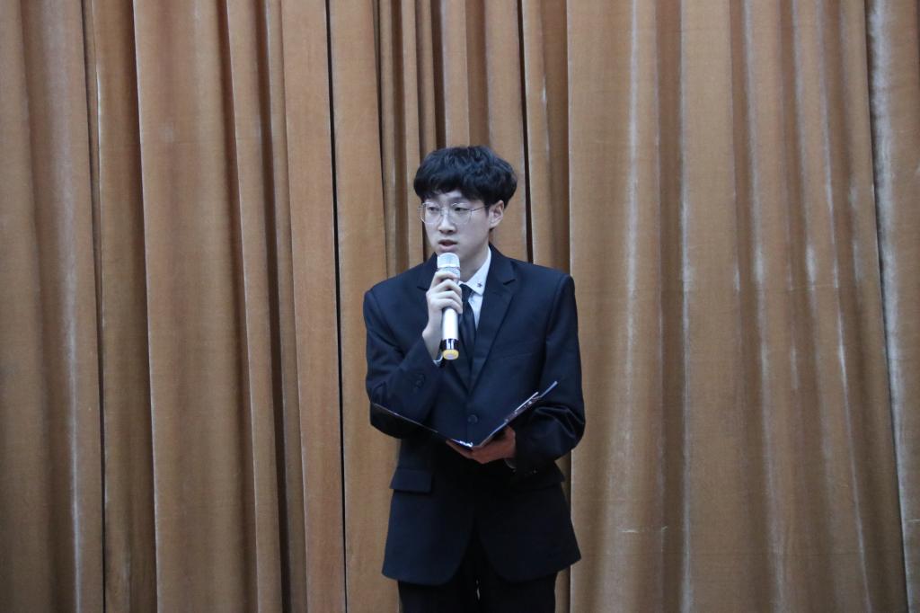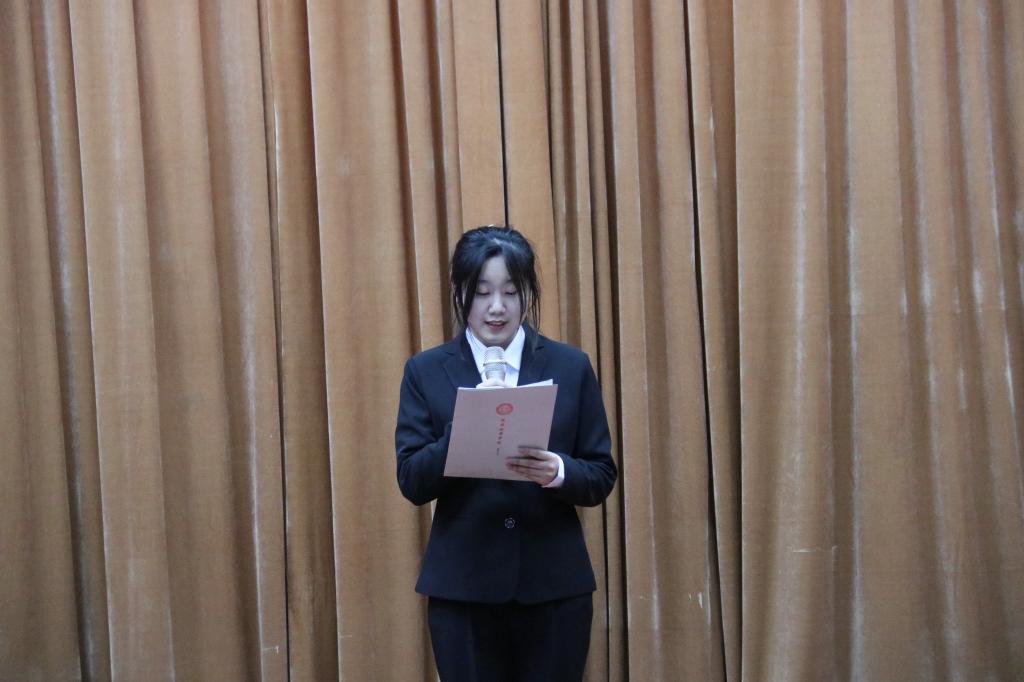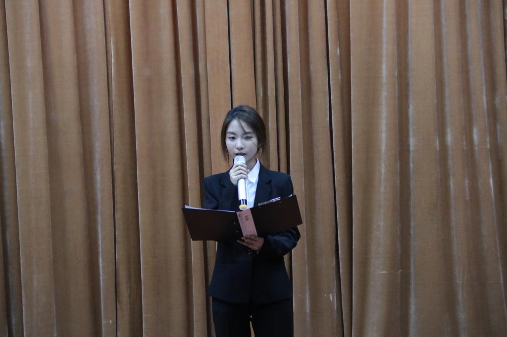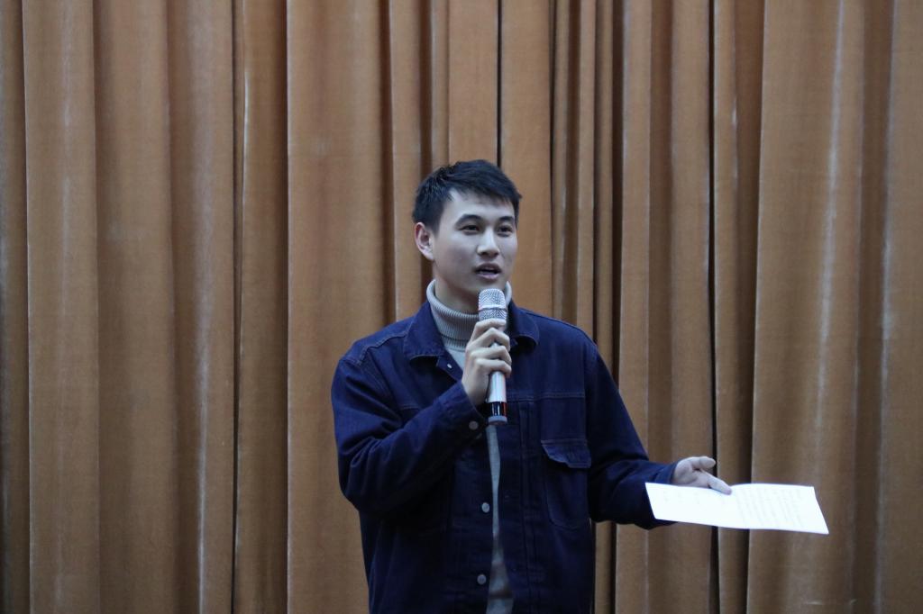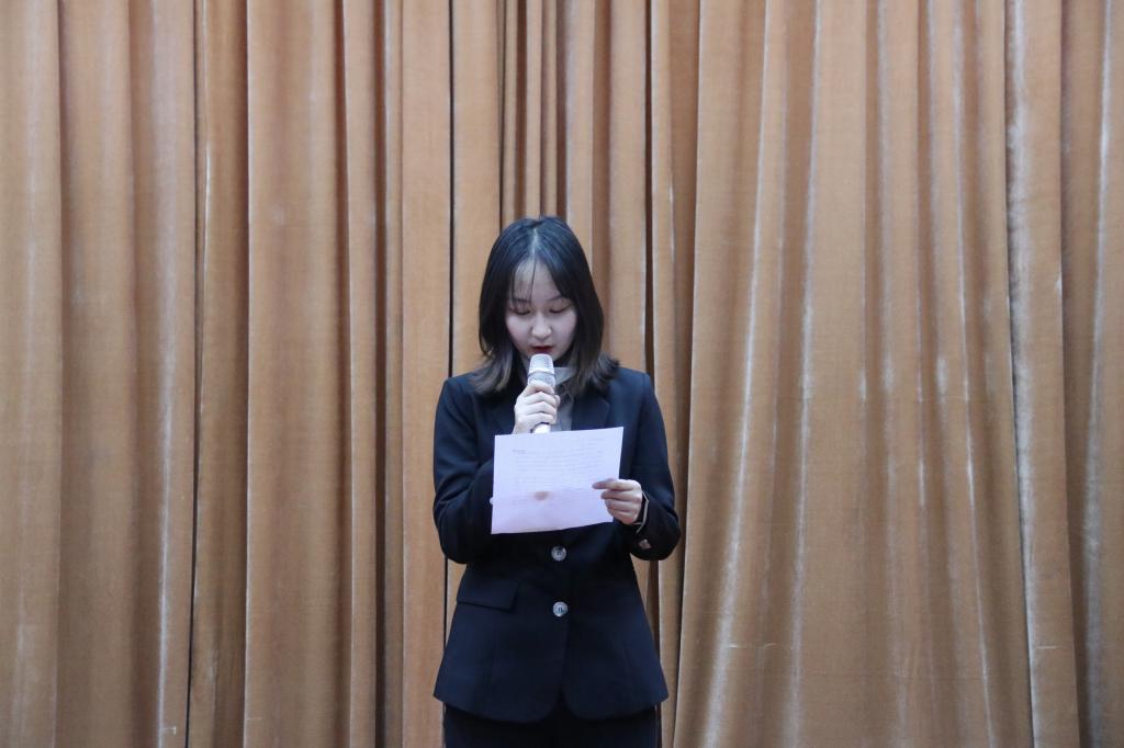 最后由第一届主持团团长常乐乐对本次活动做总结,他鼓励同学们积极参加各类活动,在活动中展现自我的风采,大胆锻炼自己,在舞台上放飞自己的梦想,挥洒自己青春的汗水,也希望各位同学们不断提升自我,在以后的工作、学习中也能取得理想的成绩。
