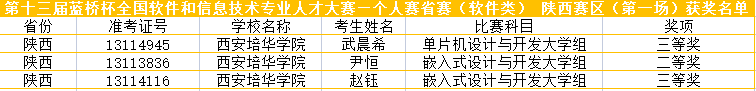 近日,由教育部高等学校计算机科学与技术教学指导委员会、工业和信息化部人才交流中心共同主办举办的第十三届“蓝桥杯”全国软件专业人才设计与创业大赛选拔赛获奖名单已经揭晓,此次比赛中,智能科学与信息工程学院学子们取得了优异的成绩。我院共42人参加比赛,获奖21项,其中,常安同学、李瑶同学和沈星宇同学获得陕西省一等奖,陕西省二等奖6名,陕西省三等奖12名。获得一等奖的同学,将代表智能科学与信息工程学院参加全国总决赛。