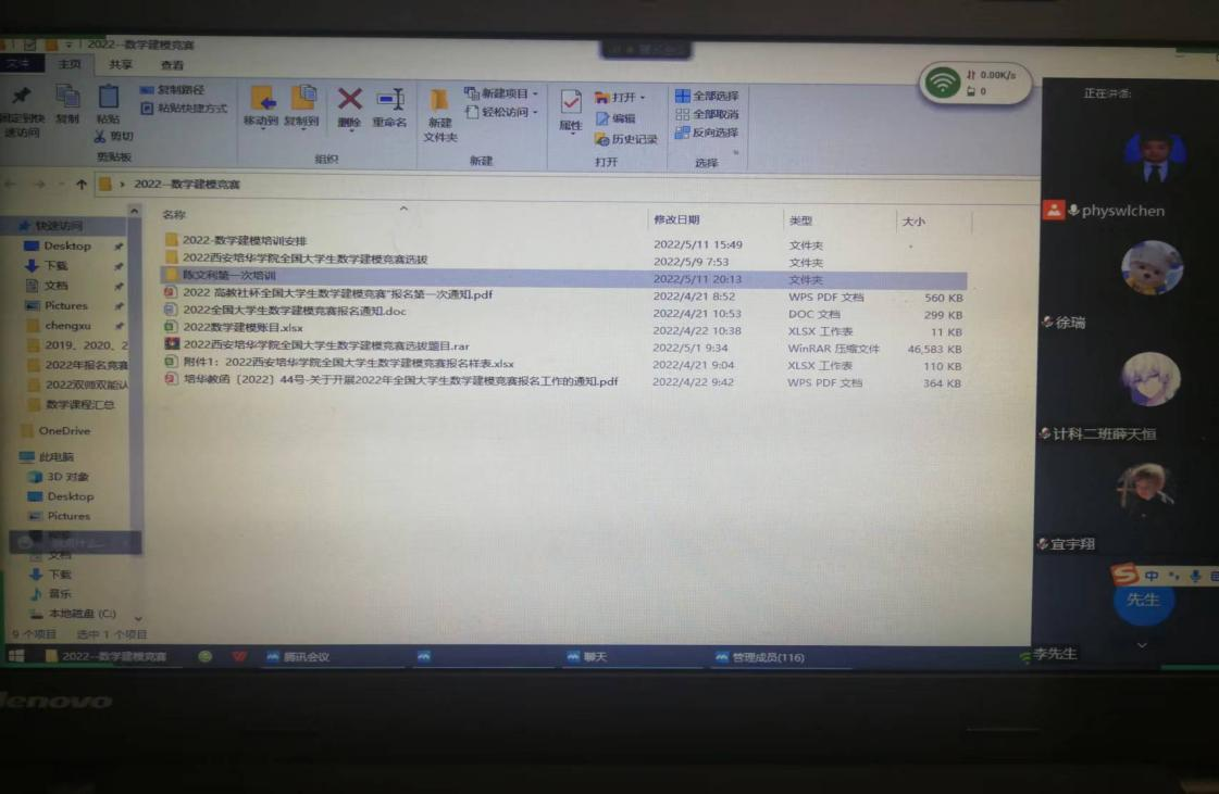 为鼓励大学生积极开展数学建模学习、参加数学建模比赛,智能科学与信息工程学院数学建模协会于5月11日19:30组织并开展了2022年(全国)数学建模比赛动员大会暨第一次数学建模培训会。邀请全国大学生数学建模竞赛优秀指导教师陈文利副教授为动员大会作精彩报告,并进行第一次培训课开讲。因疫情防控要求,将线上进行。鼓励对建模感兴趣并准备参赛的同学积极参会。